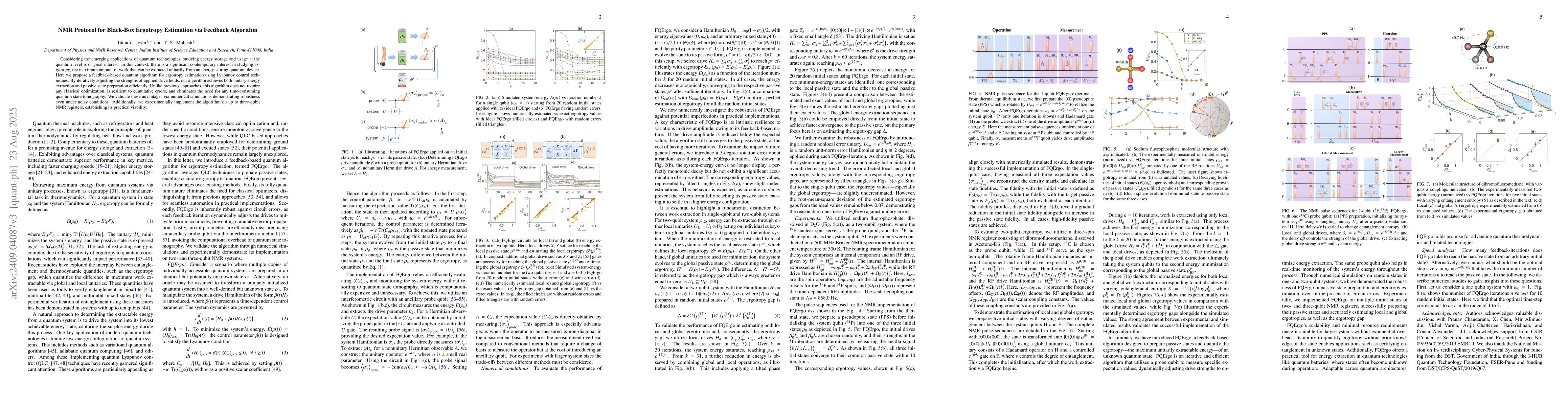 Considering the emerging applications of quantum technologies, studying energy storage and usage at the quantum level is of great interest. In this context, there is a significant contemporary interest in studying ergotropy, the maximum amount of work that can be extracted unitarily from an energy-storing quantum device. Here, we propose and experimentally demonstrate a feedback-based algorithm (FQErgo) for estimating ergotropy. This method also transforms an arbitrary initial state to its passive state, which allows no further unitary work extraction. FQErgo applies drive fields whose strengths are iteratively adjusted via certain expectation values, conveniently read using a single probe qubit. Thus, FQErgo provides a practical way for unitary energy extraction and for preparing passive states. By numerically analyzing FQErgo on random initial states, we confirm the successful preparation of passive states and estimation of ergotropy, even in the presence of drive errors. Finally, we implement FQErgo on two- and three-qubit NMR registers, prepare their passive states, and accurately estimate their ergotropy.