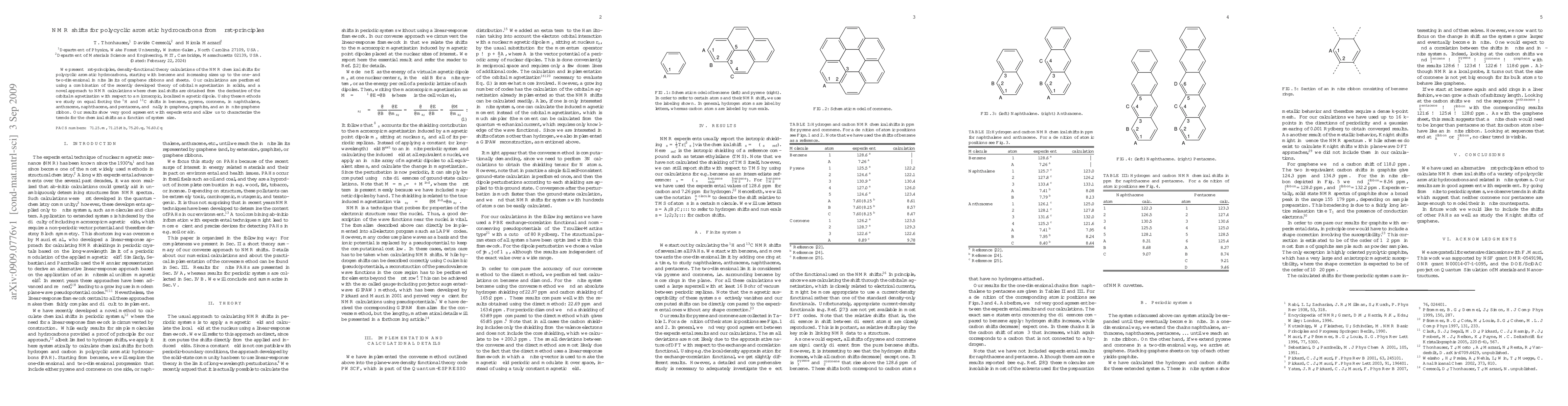 This paper reports first-principles density-functional theory calculations of NMR chemical shifts for polycyclic aromatic hydrocarbons, including benzene and larger systems like graphene. The study employs a novel method based on orbital magnetization to accurately predict $^1$H and $^{13}$C shifts, showing strong agreement with experimental data and elucidating trends in chemical shifts with system size.