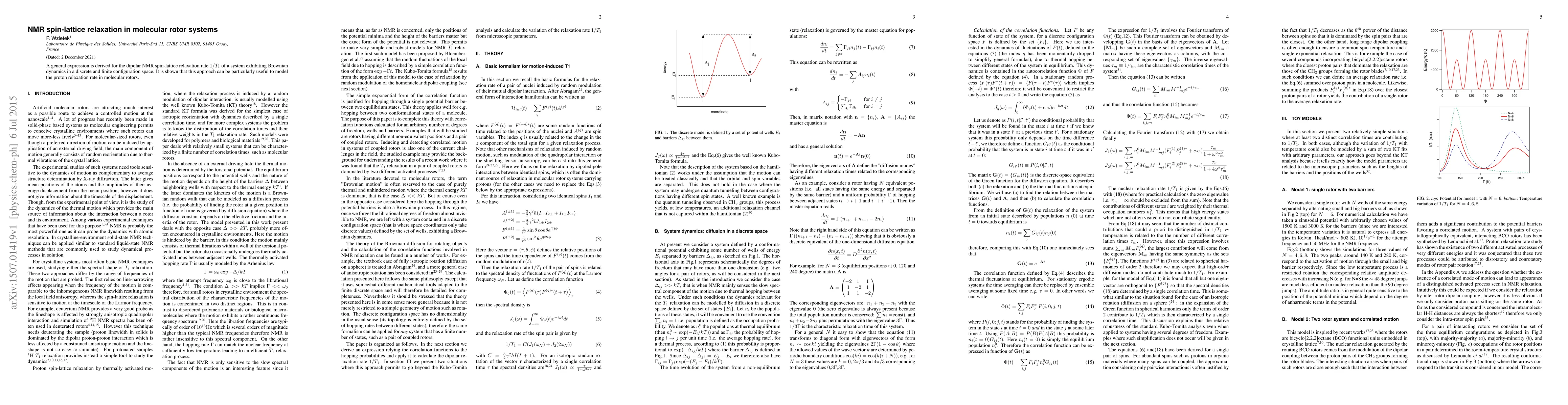 A general expression is derived for the dipolar NMR spin-lattice relaxation rate $1/T_1$ of a system exhibiting Brownian dynamics in a discrete and finite configuration space. It is shown that this approach can be particularly useful to model the proton relaxation rate in molecular rotors.