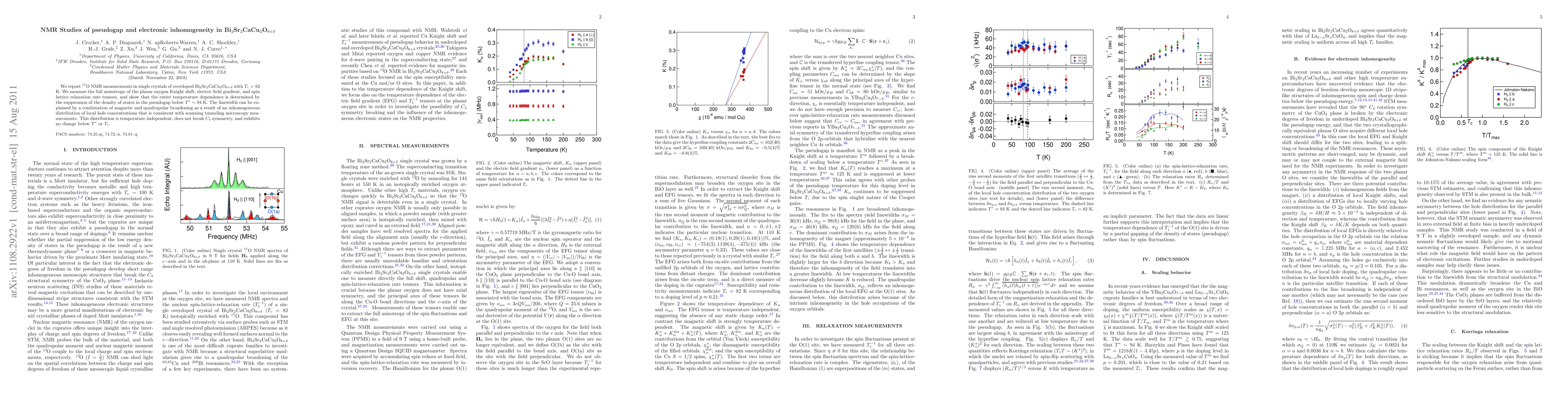Researchers used NMR spectroscopy to study Bi$_2$Sr$_2$CaCu$_2$O$_{8+ heta}$, a superconducting material, finding that the pseudogap and electronic inhomogeneity are suppressed above $T^* imes 94$ K.