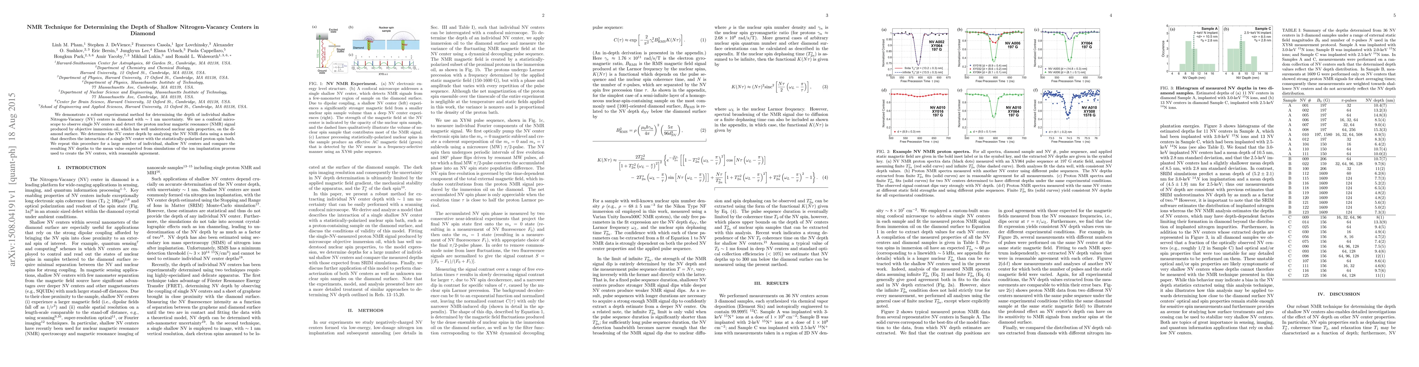 This paper presents a method using confocal microscopy and proton NMR to determine the depth of individual shallow Nitrogen-Vacancy centers in diamond with high precision. The technique compares measured depths to simulated implantation depths, showing reasonable agreement.