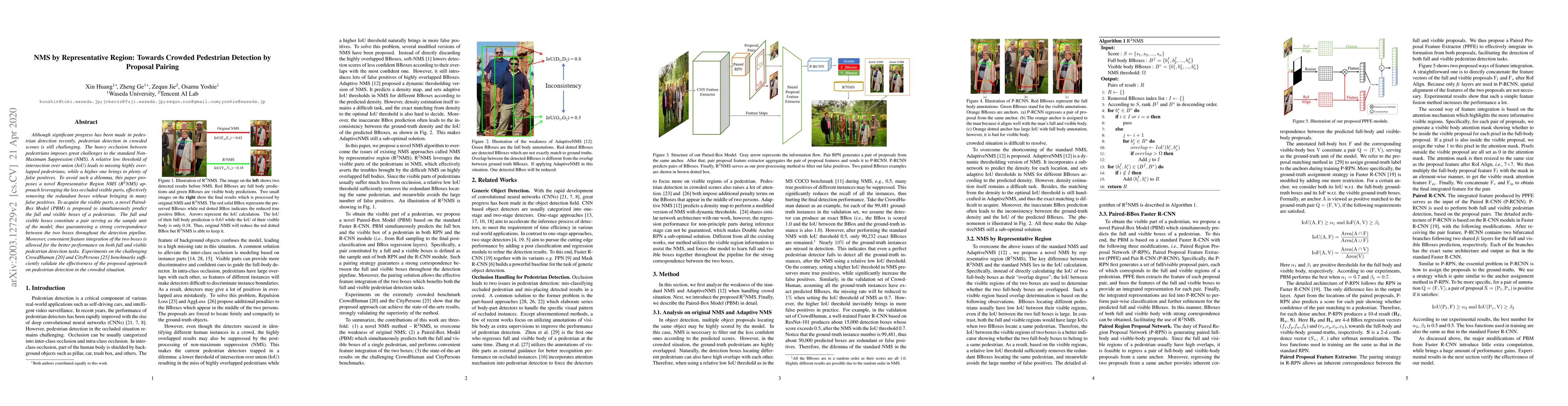 This paper proposes a Representative Region NMS approach for crowded pedestrian detection, addressing the issue of heavy occlusion. It introduces a Paired-Box Model to predict full and visible boxes, ensuring effective removal of redundant boxes without many false positives, validated through experiments on CrowdHuman and CityPersons datasets.