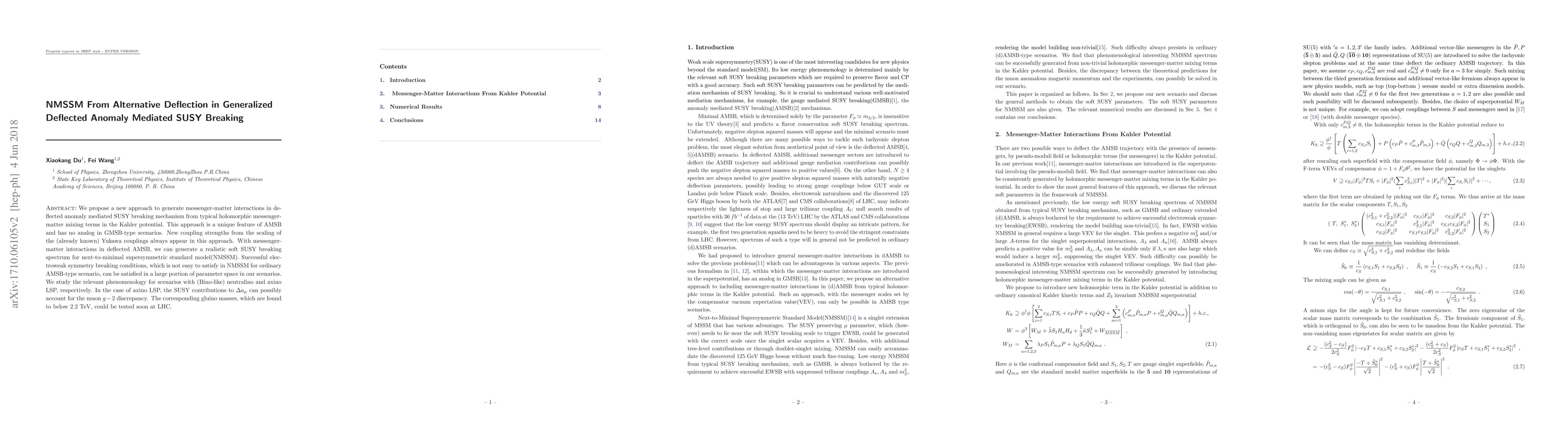 This paper proposes a novel method for generating messenger-matter interactions in deflected anomaly mediated SUSY breaking, leading to a realistic soft SUSY breaking spectrum for the NMSSM. It successfully satisfies electroweak symmetry breaking conditions and explores phenomenology for Bino-like and axino LSP scenarios, potentially explaining the muon $g-2$ discrepancy.