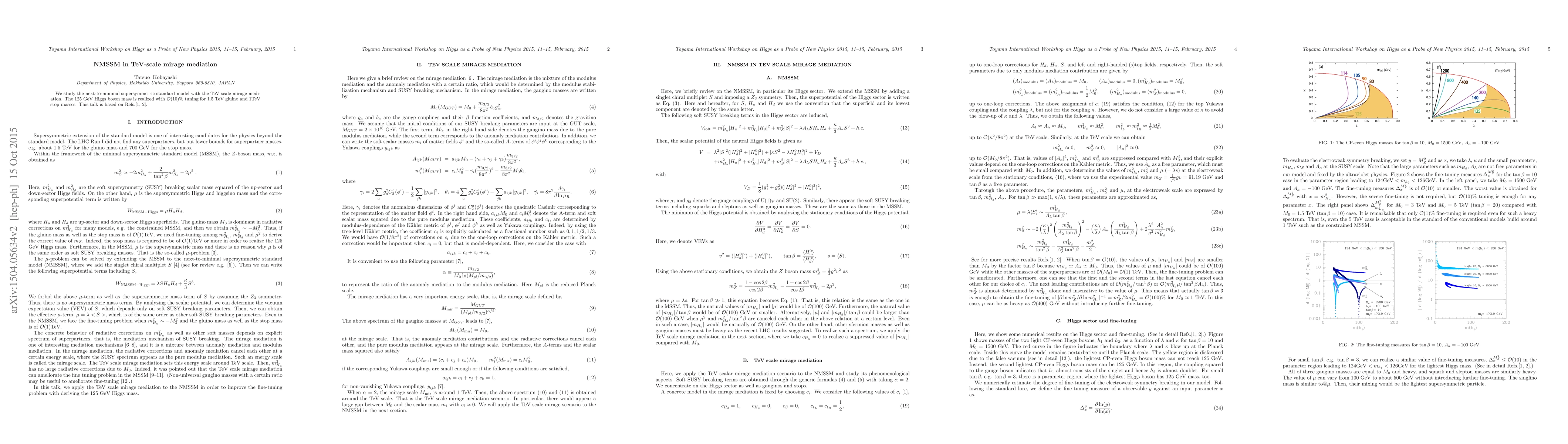 This paper investigates the next-to-minimal supersymmetric standard model under TeV scale mirage mediation, achieving a 125 GeV Higgs boson mass with approximately 10% tuning, alongside 1.5 TeV gluino and 1 TeV stop masses.