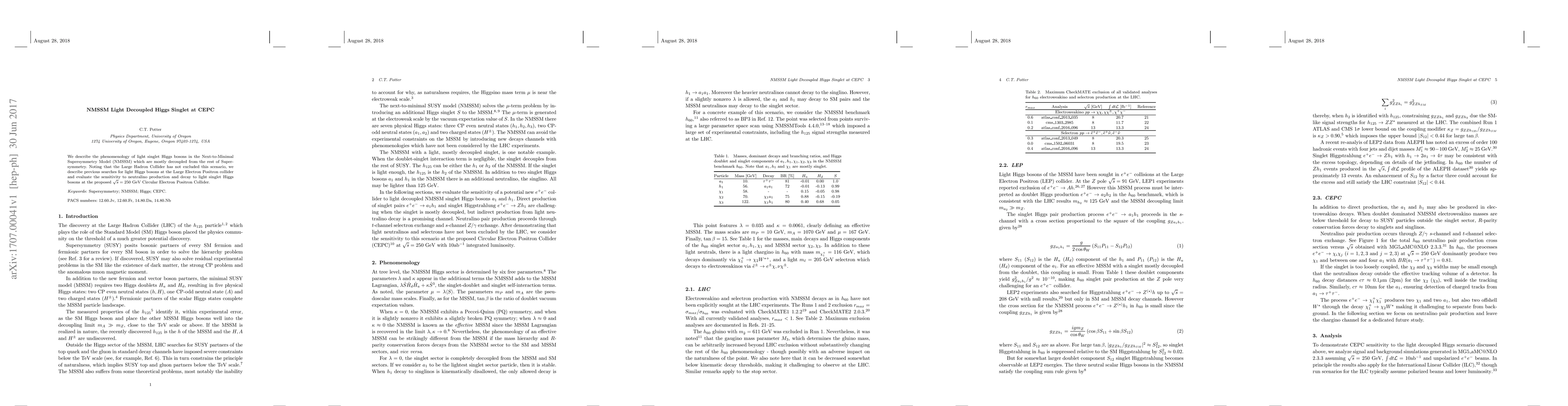 We describe the phenomenology of light singlet Higgs bosons in the Next-to-Minimal Supersymmetry Model (NMSSM) which are mostly decoupled from the rest of Supersymmetry. Noting that the Large Hadron Collider has not excluded this scenario, we describe previous searches for light Higgs bosons at the Large Electron Positron collider and evaluate the sensitivity to neutralino production and decay to light singlet Higgs bosons at the proposed $\sqrt{s}=250$~GeV Circular Electron Positron Collider.