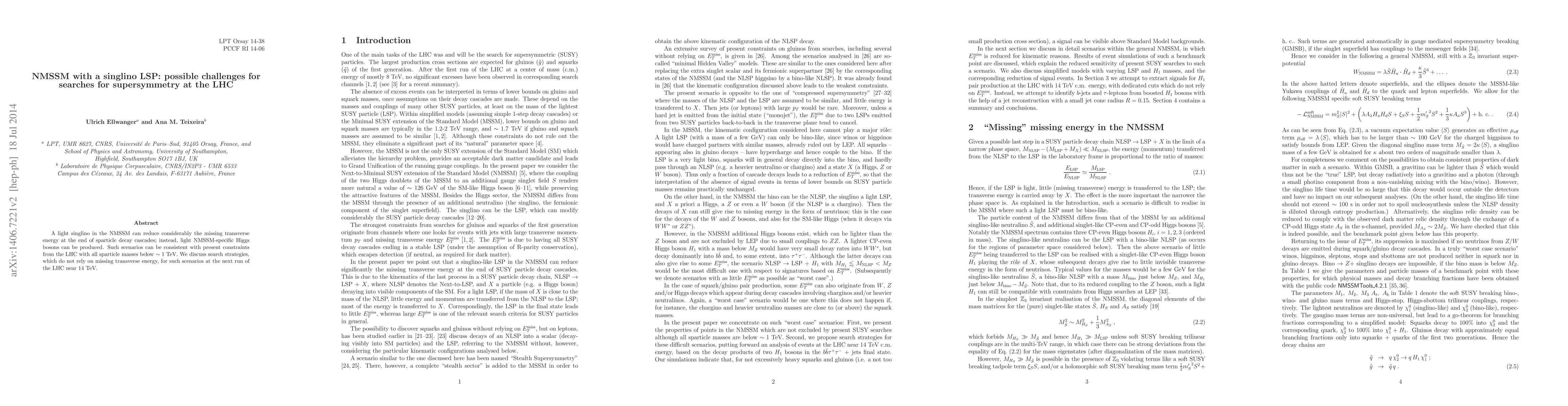 A light singlino in the NMSSM can reduce considerably the missing transverse energy at the end of sparticle decay cascades; instead, light NMSSM-specific Higgs bosons can be produced. Such scenarios can be consistent with present constraints from the LHC with all sparticle masses below ~1 TeV. We discuss search strategies, which do not rely on missing transverse energy, for such scenarios at the next run of the LHC near 14 TeV.
