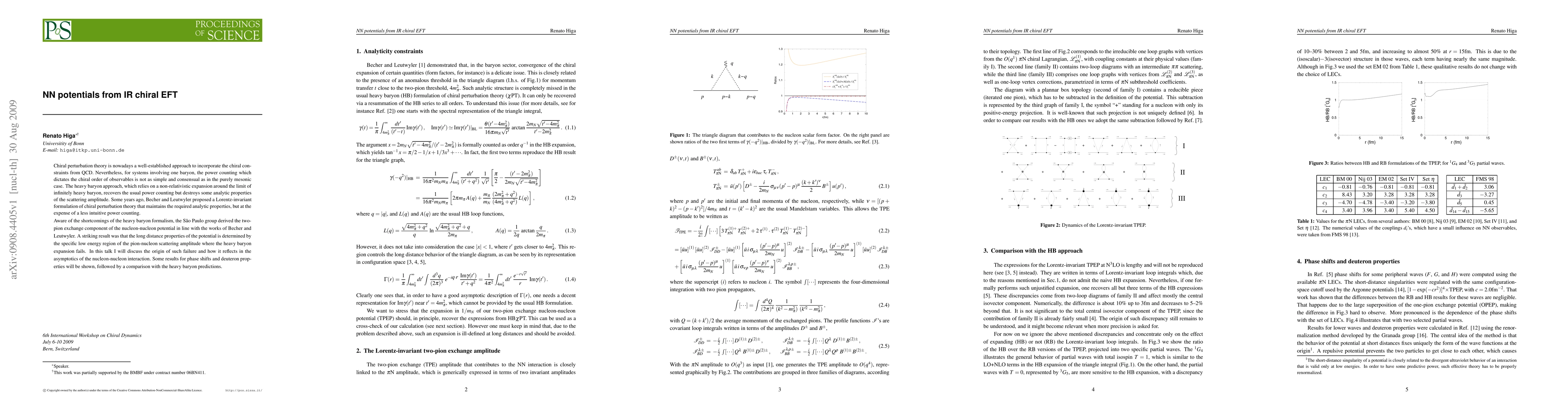 Chiral perturbation theory is nowadays a well-established approach to incorporate the chiral constraints from QCD. Nevertheless, for systems involving one baryon, the power counting which dictates the chiral order of observables is not as simple and consensual as in the purely mesonic case. The heavy baryon approach, which relies on a non-relativistic expansion around the limit of infinitely heavy baryon, recovers the usual power counting but destroys some analytic properties of the scattering amplitude. Some years ago, Becher and Leutwyler proposed a Lorentz-invariant formulation of chiral perturbation theory that maintains the required analytic properties, but at the expense of a less intuitive power counting. Aware of the shortcomings of the heavy baryon formalism, the S\~ao Paulo group derived the two-pion exchange component of the nucleon-nucleon potential in line with the works of Becher and Leutwyler. A striking result was that the long distance properties of the potential is determined by the specific low energy region of the pion-nucleon scattering amplitude where the heavy baryon expansion fails. In this talk I will discuss the origin of such failure and how it reflects in the asymptotics of the nucleon-nucleon interaction. Some results for phase shifts and deuteron properties will be shown, followed by a comparison with the heavy baryon predictions.