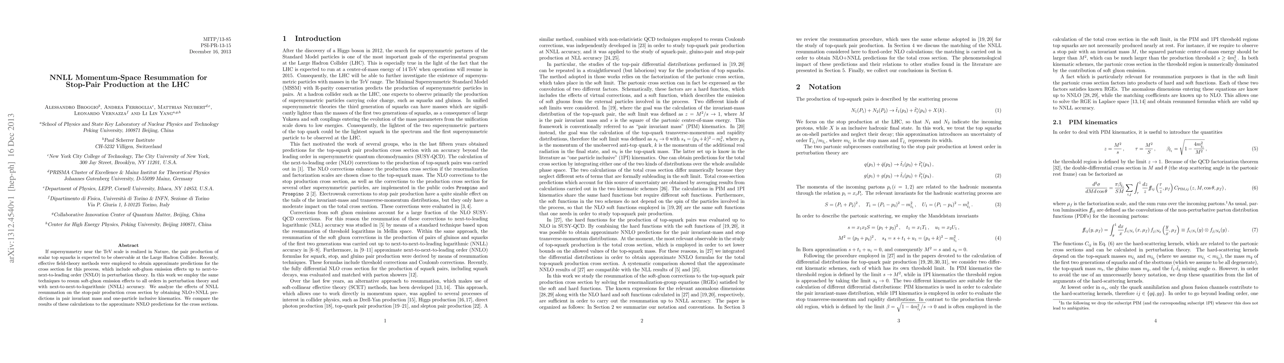 This paper employs NNLL momentum-space resummation techniques to improve predictions for stop-pair production at the LHC, achieving next-to-next-to-logarithmic accuracy. The study compares these refined predictions with approximate NNLO results to assess the impact of resummation on the cross section.