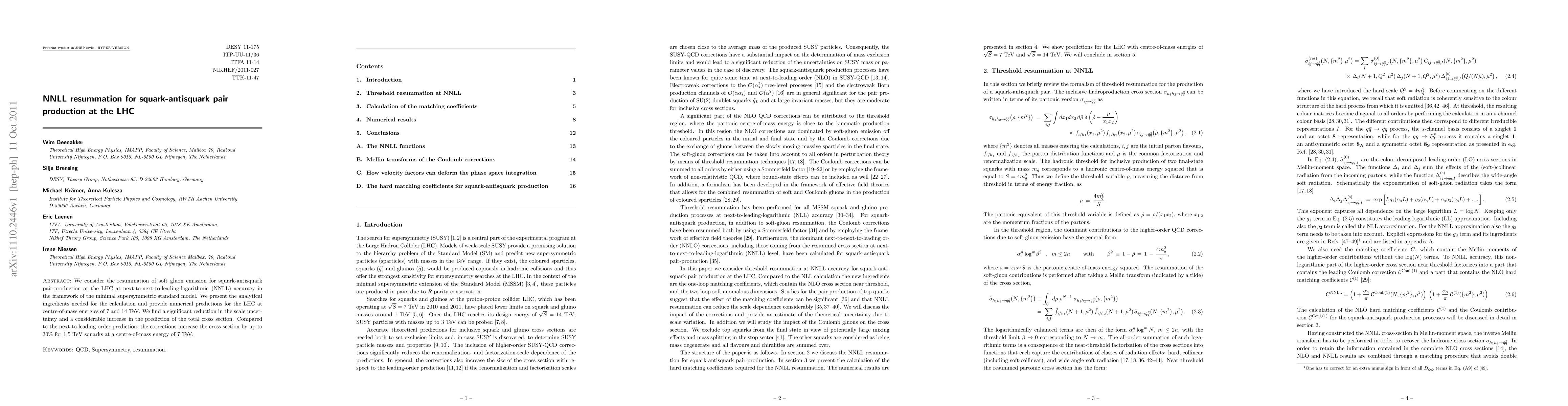 Researchers used NNLL resummation to improve predictions for squark-antisquark pair production at the LHC, reducing scale uncertainty and increasing total cross section predictions by up to 30%.