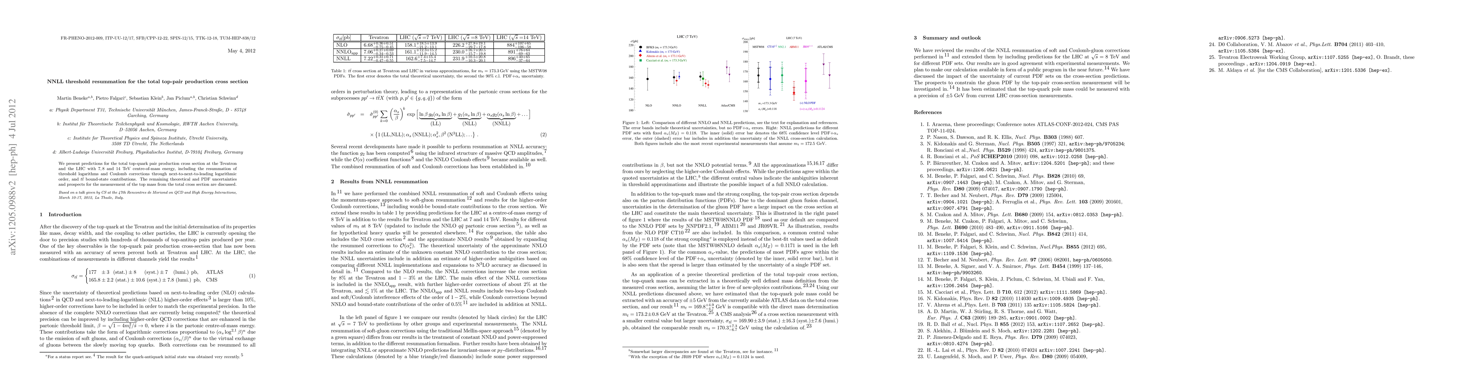 We present predictions for the total top-quark pair production cross section at the Tevatron and the LHC with 7,8 and 14 TeV centre-of-mass energy, including the resummation of threshold logarithms and Coulomb corrections through next-to-next-to-leading logarithmic order, and top-antitop bound-state contributions. The remaining theoretical and PDF uncertainties and prospects for the measurement of the top mass from the total cross section are discussed.