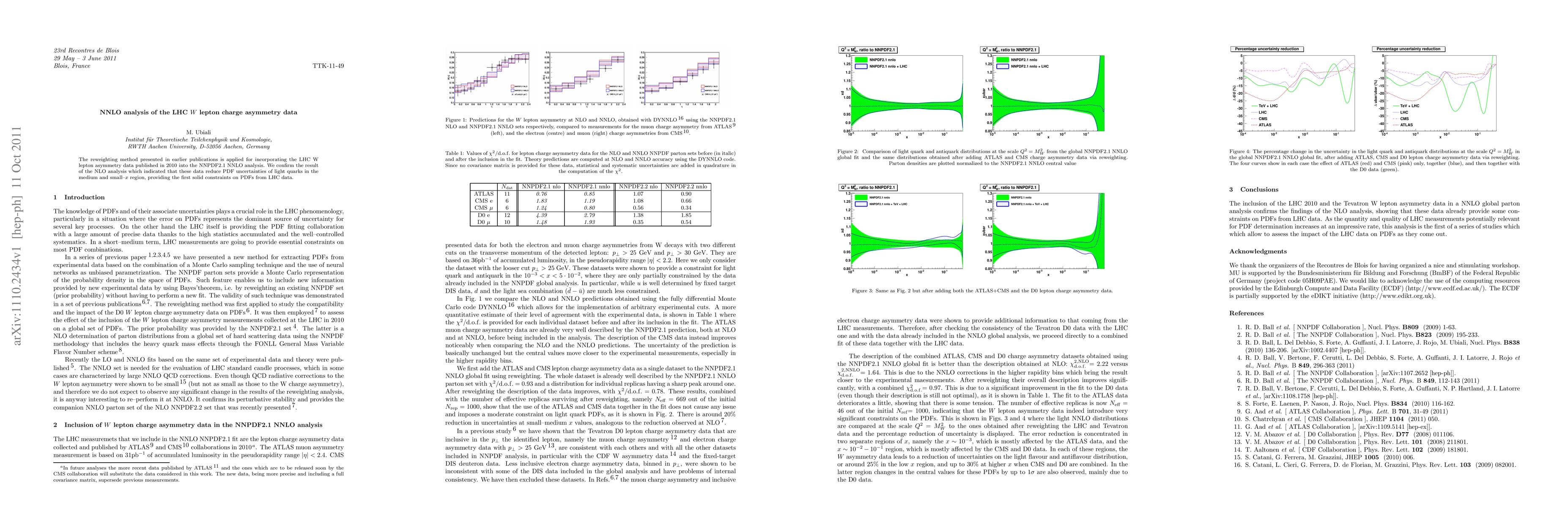 The reweighting method presented in earlier publications is applied for incorporating the LHC W lepton asymmetry data published in 2010 into the NNPDF2.1 NNLO analysis. We confirm the result of the NLO analysis which indicated that these data reduce PDF uncertainties of light quarks in the medium and small-x region, providing the first solid constraints on PDFs from LHC data.