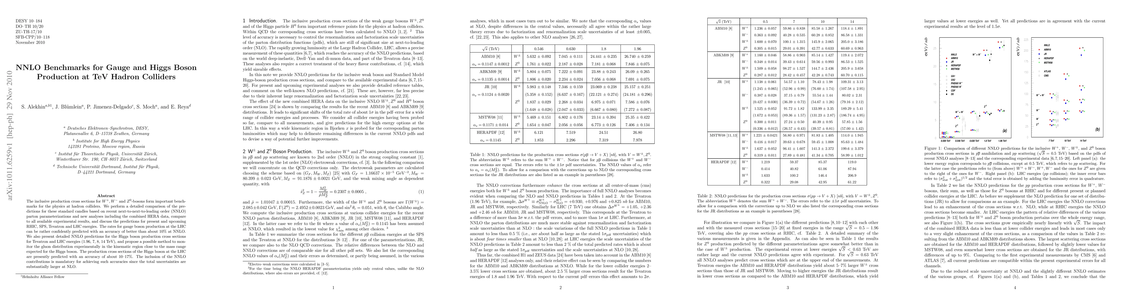 The inclusive production cross sections for $W^+, W^-$ and $Z^0$-bosons form important benchmarks for the physics at hadron colliders. We perform a detailed comparison of the predictions for these standard candles based on recent next-to-next-to-leading order (NNLO) parton parameterizations and new analyses including the combined HERA data, compare to all available experimental results, and discuss the predictions for present and upcoming RHIC, SPS, Tevatron and LHC energies. The rates for gauge boson production at the LHC can be rather confidently predicted with an accuracy of better than about 10% at NNLO. We also present detailed NNLO predictions for the Higgs boson production cross sections for Tevatron and LHC energies (1.96, 7, 8, 14 TeV), and propose a possible method to monitor the gluon distribution experimentally in the kinematic region close to the mass range expected for the Higgs boson. The production cross sections of the Higgs boson at the LHC are presently predicted with an accuracy of about 10--17%. The inclusion of the NNLO contributions is mandatory for achieving such accuracies since the total uncertainties are substantially larger at NLO.