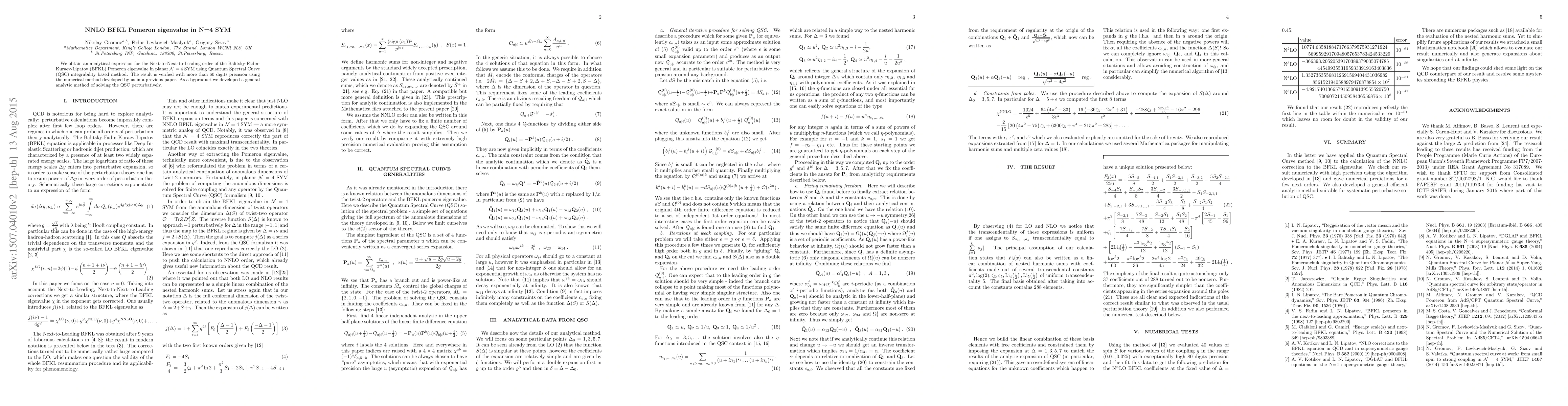 We obtain an analytical expression for the Next-to-Next-to-Leading order of the Balitsky-Fadin-Kuraev-Lipatov (BFKL) Pomeron eigenvalue in planar SYM N=4 using Quantum Spectral Curve (QSC) integrability based method. The result is verified with more than 60 digits precision using the numerical method developed by us in a previous paper. As a byproduct we developed a general analytic method of solving the QSC perturbatively.