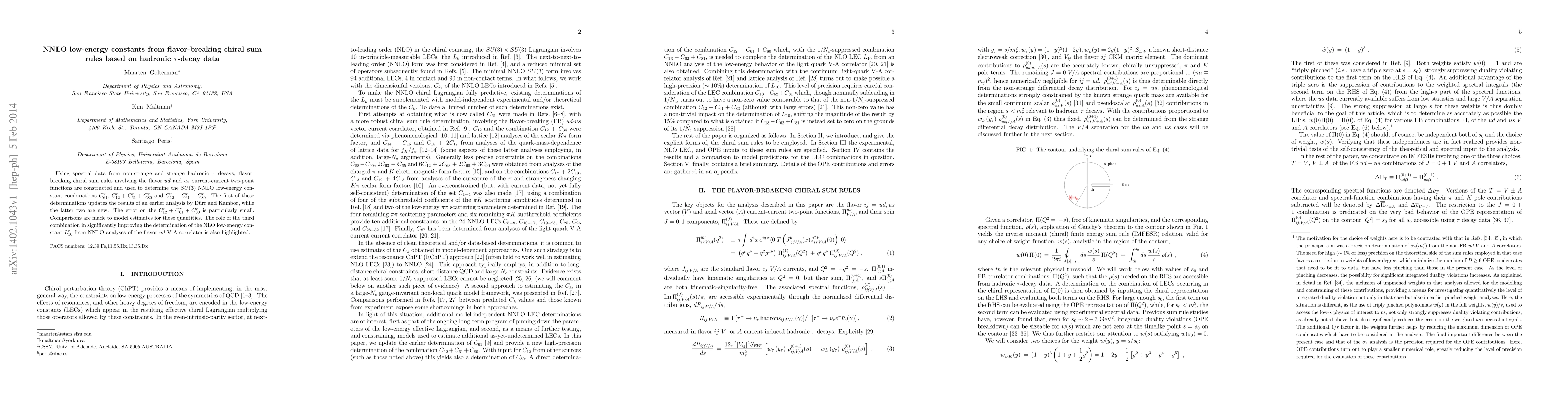 Using spectral data from non-strange and strange hadronic tau decays, flavor-breaking chiral sum rules involving the flavor ud and us current-current two-point functions are constructed and used to determine the SU(3) NNLO low-energy constant combinations C_{61}^r, C_{12}^r+C_{61}^r+C_{80}^r and C_{12}^r-C_{61}^r+C_{80}^r. The first of these determinations updates the results of an earlier analysis by Durr and Kambor, while the latter two are new. The error on the C_{12}^r+C_{61}^r+C_{80}^r is particularly small. Comparisons are made to model estimates for these quantities. The role of the third combination in significantly improving the determination of the NLO low-energy constant L_{10}^r from NNLO analyses of the flavor ud V-A correlator is also highlighted.