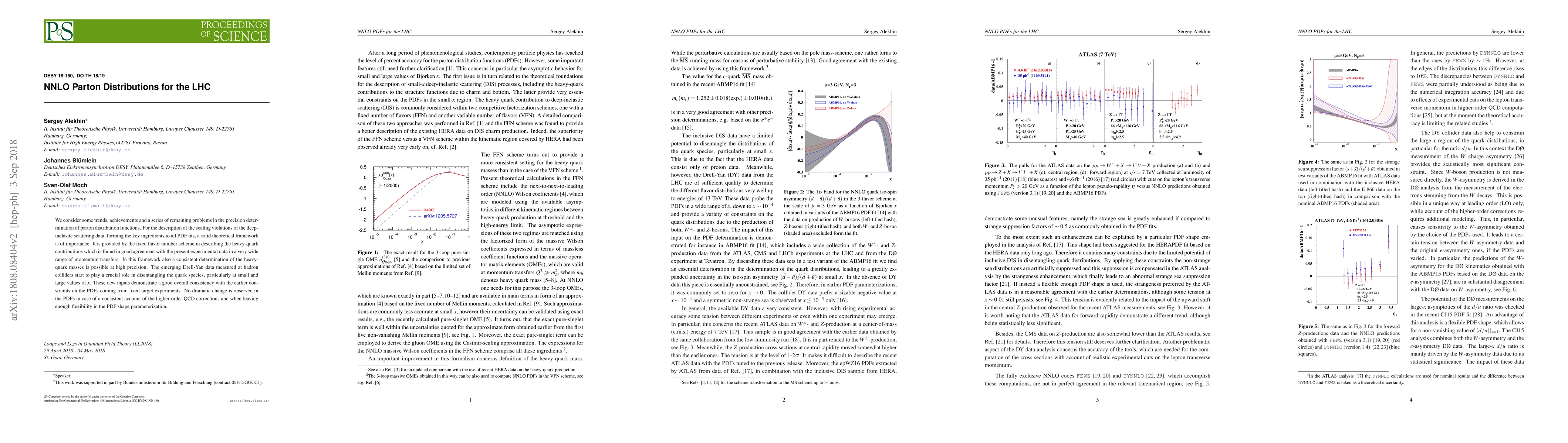 We consider some trends, achievements and a series of remaining problems in the precision determination of parton distribution functions. For the description of the scaling violations of the deep-inelastic scattering data, forming the key ingredients to all PDF fits, a solid theoretical framework is of importance. It is provided by the fixed flavor number scheme in describing the heavy-quark contributions which is found in good agreement with the present experimental data in a very wide range of momentum transfers. In this framework also a consistent determination of the heavy-quark masses is possible at high precision. The emerging Drell-Yan data measured at hadron colliders start to play a crucial role in disentangling the quark species, particularly at small and large values of $x$. These new inputs demonstrate a good overall consistency with the earlier constraints on the PDFs coming from fixed-target experiments. No dramatic change is observed in the PDFs in case of a consistent account of the higher-order QCD corrections and when leaving enough flexibility in the PDF shape parameterization.}