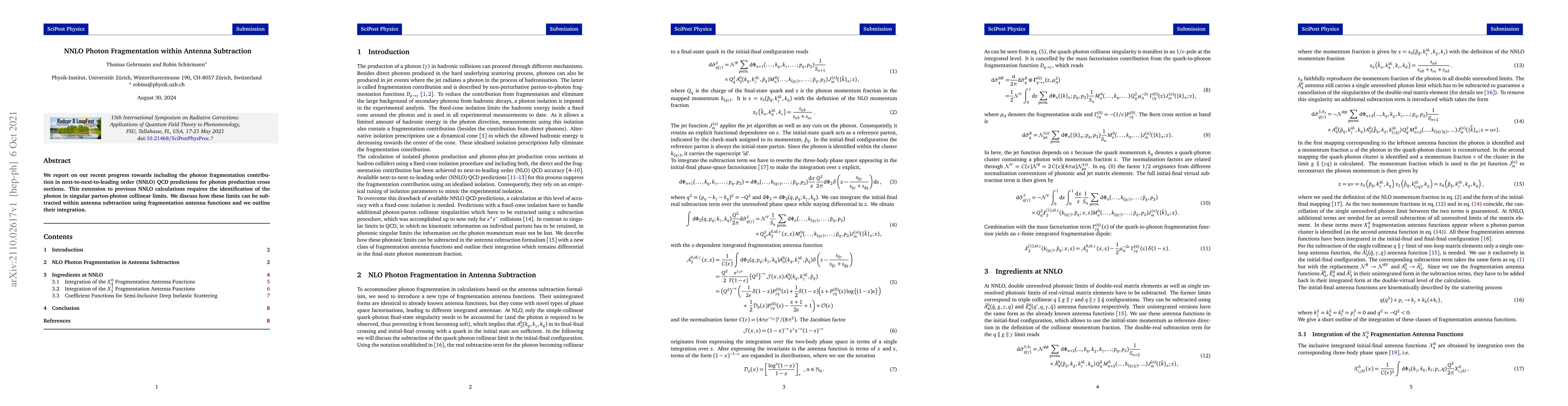 This paper advances NNLO QCD predictions for photon production by incorporating photon fragmentation contributions, utilizing antenna subtraction to handle singular parton-photon collinear limits through fragmentation antenna functions. The integration of these functions is also detailed.