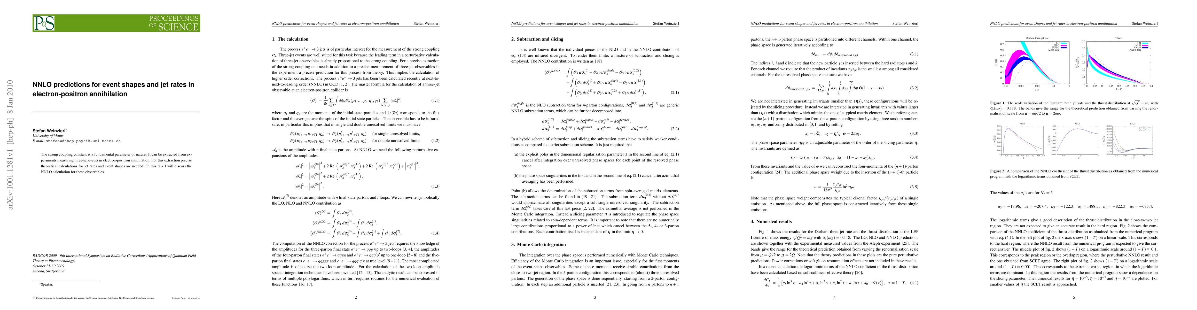 The strong coupling constant is a fundamental parameter of nature. It can be extracted from experiments measuring three-jet events in electron-positron annihilation. For this extraction precise theoretical calculations for jet rates and event shapes are needed. In this talk I will discuss the NNLO calculation for these observables.