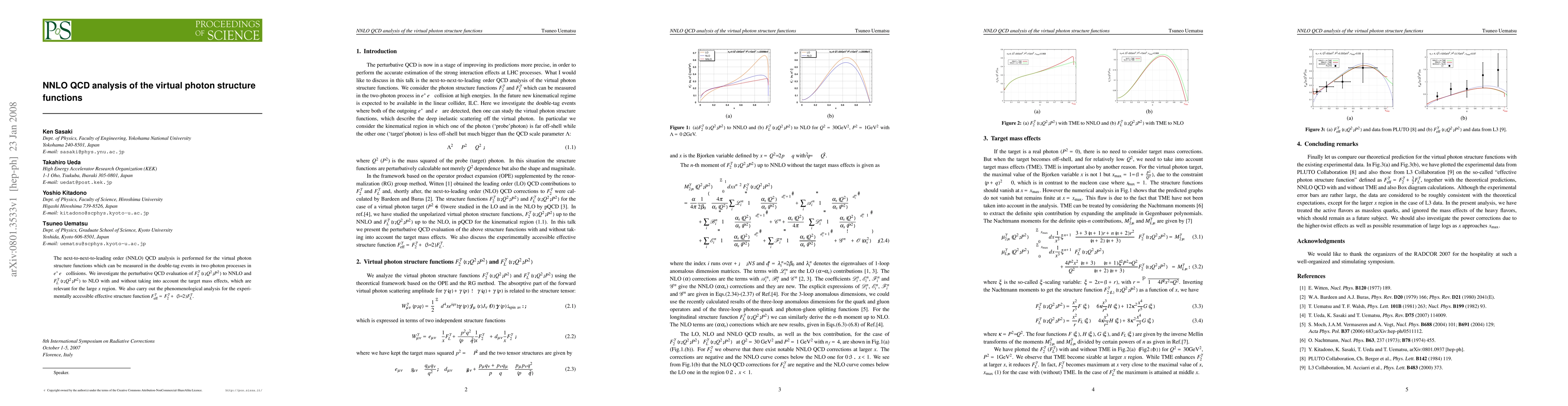 This paper conducts a next-to-next-to-leading order (NNLO) QCD analysis of virtual photon structure functions, focusing on the double-tag events in two-photon processes in $e^+e^-$ collisions. It evaluates $F_2^\gamma$ to NNLO and $F_L^\gamma$ to NLO, considering target mass effects for large $x$ regions, and performs a phenomenological analysis of the effective structure function $F_{\rm eff}^\gamma$.