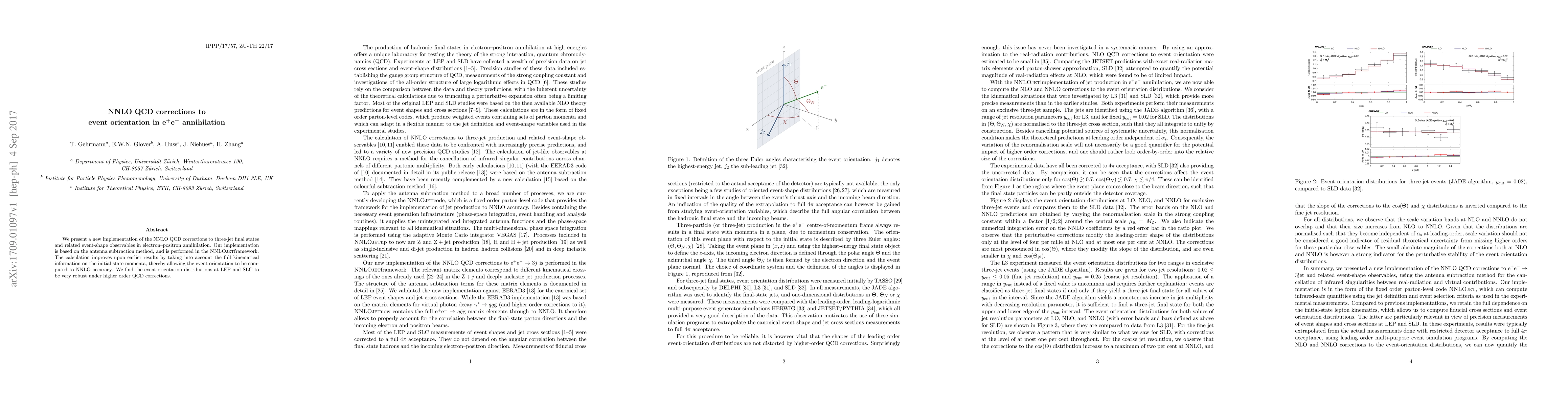 We present a new implementation of the NNLO QCD corrections to three-jet final states and related event-shape observables in electron--positron annihilation. Our implementation is based on the antenna subtraction method, and is performed in the NNLOJET framework. The calculation improves upon earlier results by taking into account the full kinematical information on the initial state momenta, thereby allowing the event orientation to be computed to NNLO accuracy. We find the event-orientation distributions at LEP and SLC to be very robust under higher order QCD corrections.