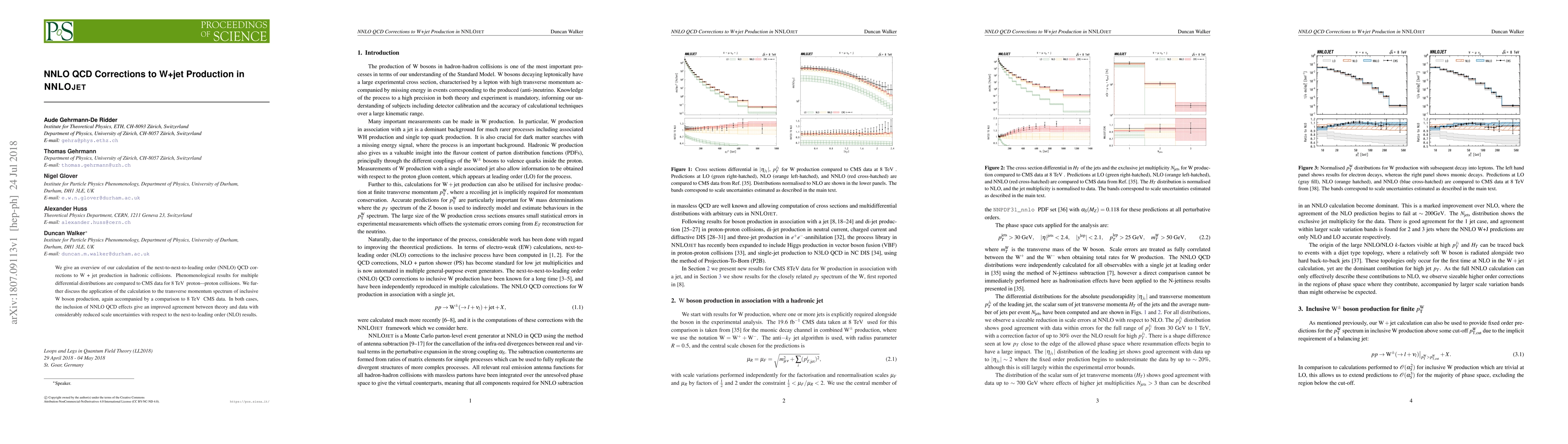 We give an overview of our calculation of the next-to-next-to-leading order (NNLO) QCD corrections to W + jet production in hadronic collisions. Phenomenological results for multiple differential distributions are compared to CMS data for 8 TeV proton-proton collisions. We further discuss the application of the calculation to the transverse momentum spectrum of inclusive W boson production, again accompanied by a comparison to 8 TeV CMS data. In both cases, the inclusion of NNLO QCD effects give an improved agreement between theory and data with considerably reduced scale uncertainties with respect to the next-to-leading order (NLO) results.
