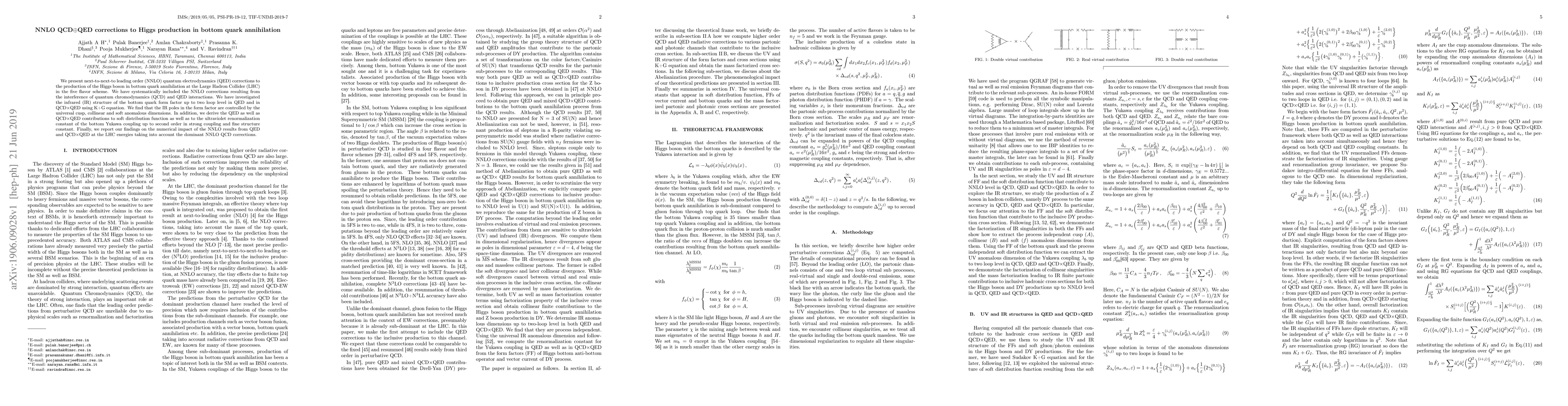 This paper presents next-to-next-to leading order (NNLO) corrections for Higgs production via bottom quark annihilation at the LHC, incorporating both QCD and QED interactions. The study reveals the infrared structure of the bottom quark form factor and reports the numerical impact of these NNLO corrections on LHC measurements.