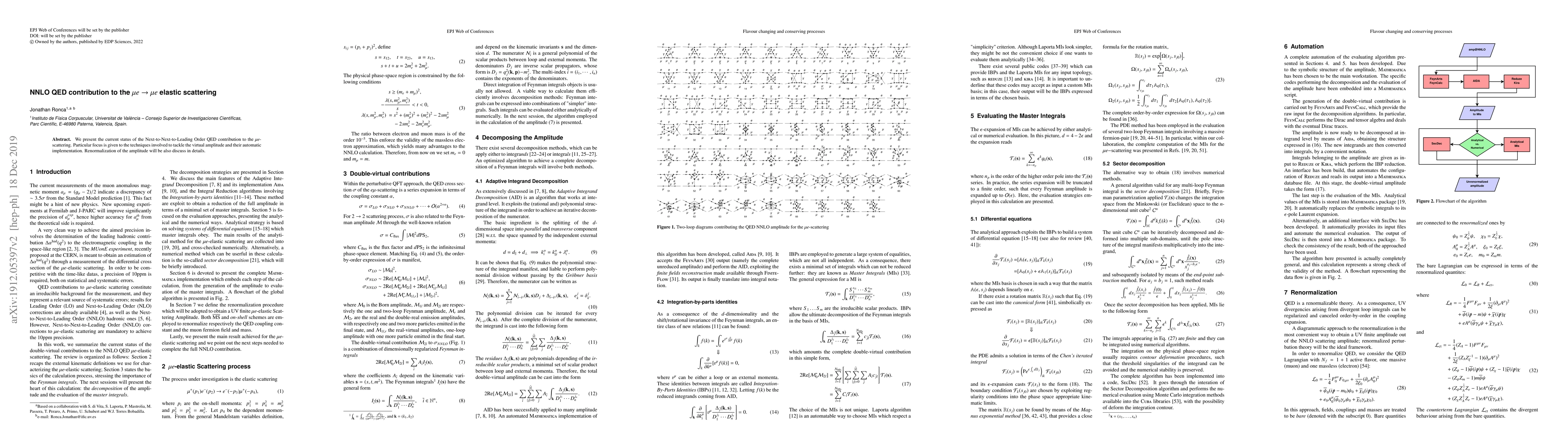 Researchers studied the Next-to-Next-to-Leading Order QED contribution to muon-electron scattering, focusing on virtual amplitude techniques and renormalization methods.