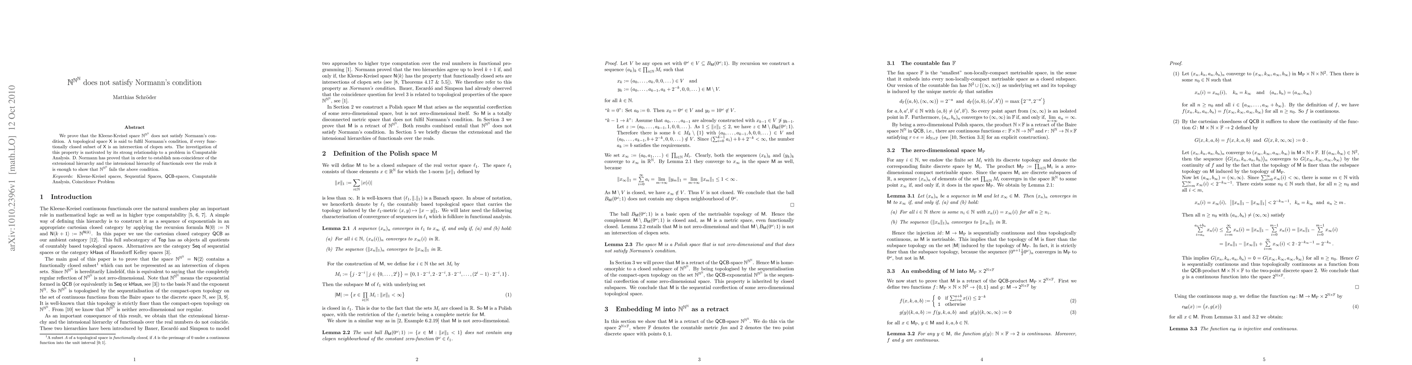 The paper proves that the Kleene-Kreisel space N^N^N does not meet Normann's condition, which requires every functionally closed subset to be an intersection of clopen sets. This finding is significant as it contributes to distinguishing the extensional and intensional hierarchies of functionals over the reals in Computable Analysis.