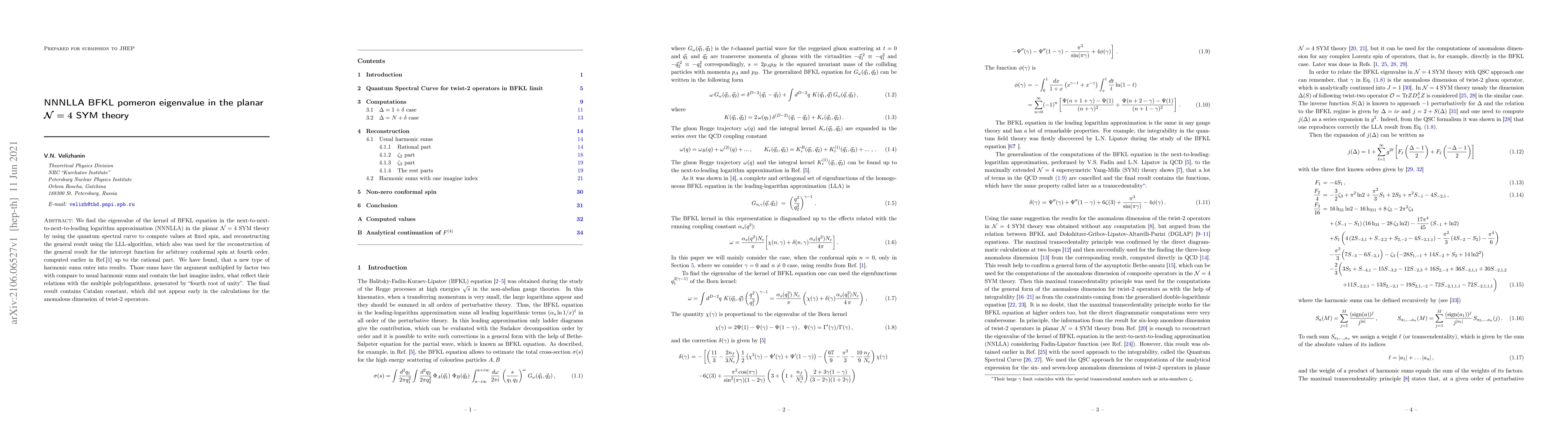 This paper computes the NNNLLA eigenvalue of the BFKL kernel in planar N=4 SYM theory using the quantum spectral curve and the LLL-algorithm. It introduces new harmonic sums related to multiple polylogarithms and includes Catalan numbers in the final result, which were not previously observed in twist-2 operator calculations.