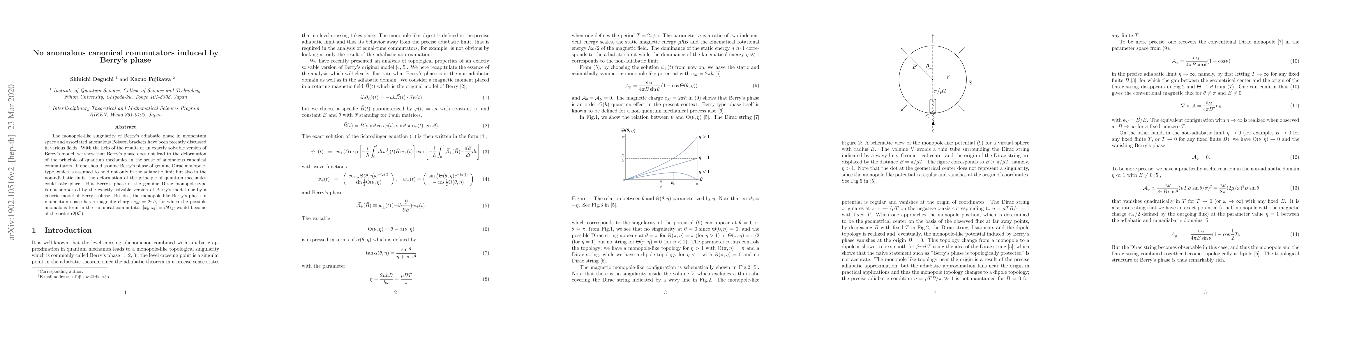 This paper demonstrates that Berry's phase does not induce anomalous canonical commutators in quantum mechanics, even in the non-adiabatic limit. The study concludes that the monopole-like singularity associated with Berry's phase does not lead to a deformation of quantum mechanics principles.