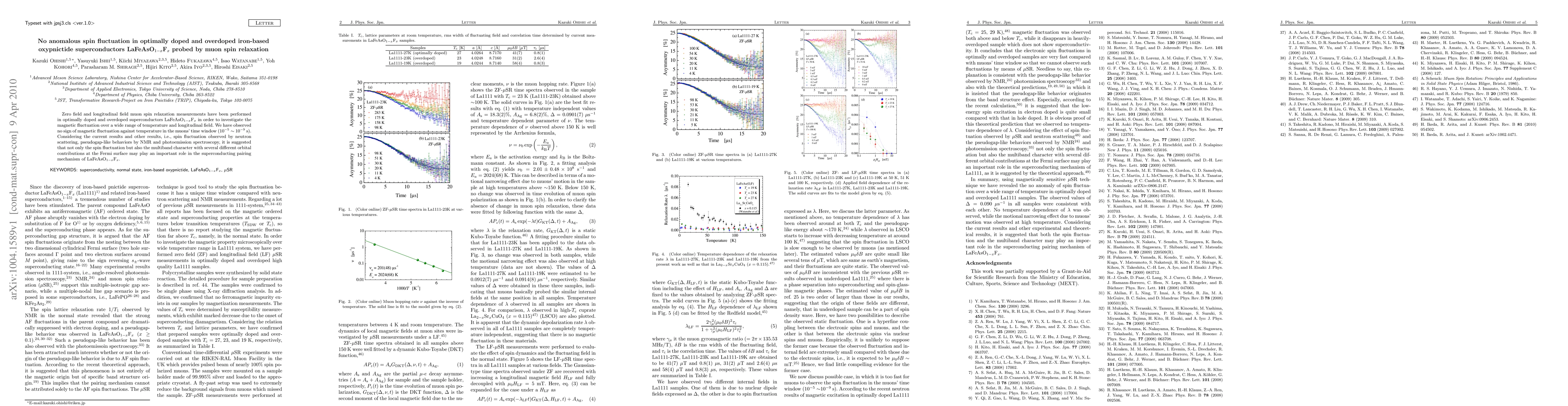 This study uses zero-field and longitudinal field muon spin relaxation to find no anomalous spin fluctuation in optimally doped and overdoped LaFeAsO$_{1-x}$F$_x$ superconductors. The findings suggest that the superconducting pairing mechanism may involve multiband character and various orbital contributions, despite observed pseudogap-like behaviors and spin fluctuations from other methods.