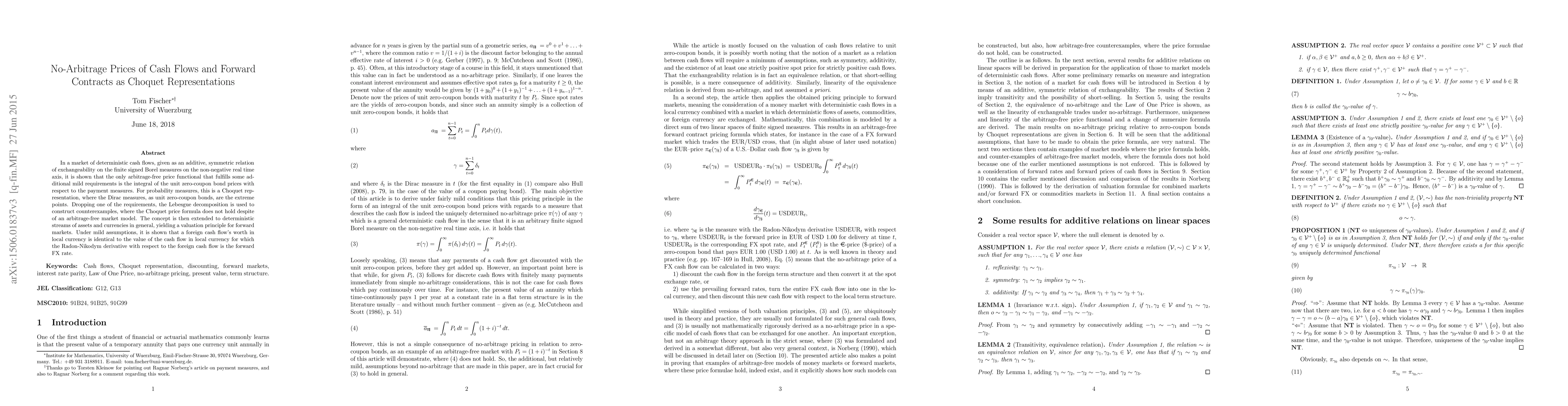 The paper shows that in an arbitrage-free market, cash flows can be valued using a Choquet representation, where the value of a foreign currency is equal to the forward exchange rate. This valuation principle applies to both deterministic cash flows and general streams of assets and currencies.