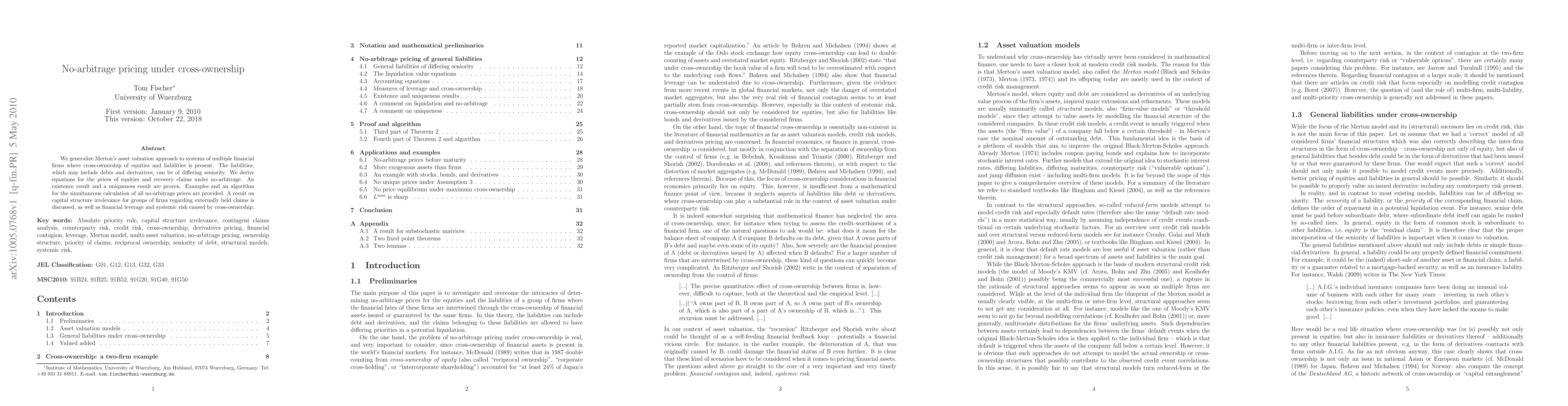 We generalize Merton's asset valuation approach to systems of multiple financial firms where cross-ownership of equities and liabilities is present. The liabilities, which may include debts and derivatives, can be of differing seniority. We derive equations for the prices of equities and recovery claims under no-arbitrage. An existence result and a uniqueness result are proven. Examples and an algorithm for the simultaneous calculation of all no-arbitrage prices are provided. A result on capital structure irrelevance for groups of firms regarding externally held claims is discussed, as well as financial leverage and systemic risk caused by cross-ownership.