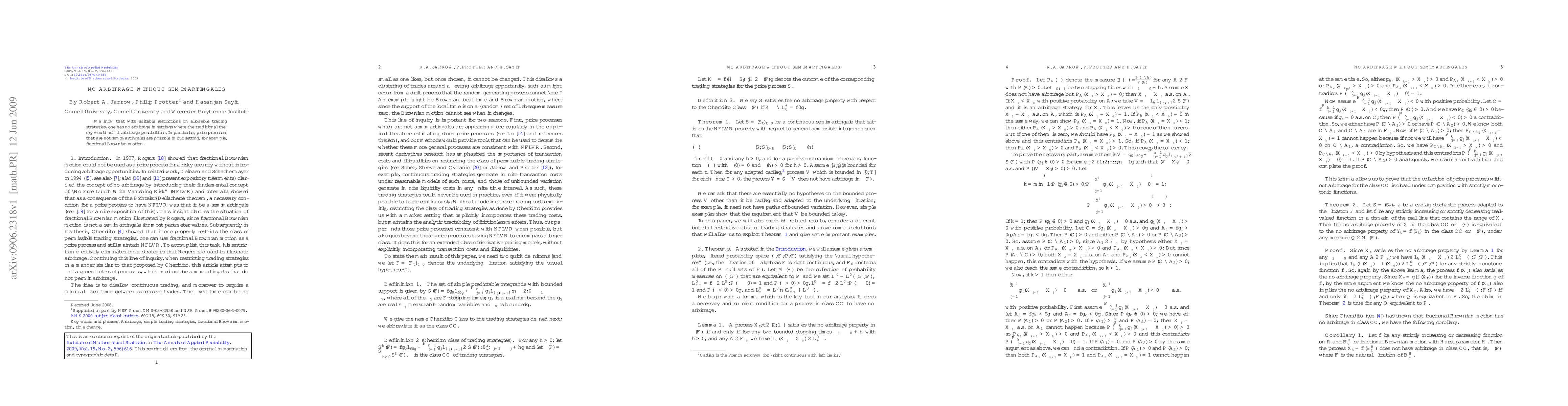Researchers show that without certain restrictions, there can be no arbitrage in financial markets even when price processes are not semimartingales, a key concept in mathematical finance.