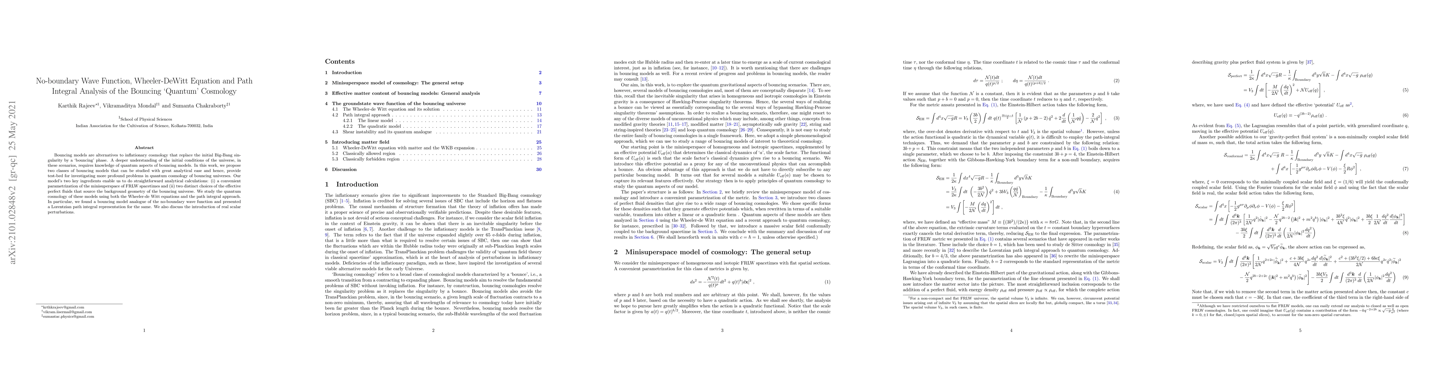 This paper proposes two analytically tractable bouncing cosmology models to explore quantum aspects of the universe's initial conditions, employing the Wheeler-deWitt equation and path integral methods to study their quantum cosmology, including the introduction of real scalar perturbations.