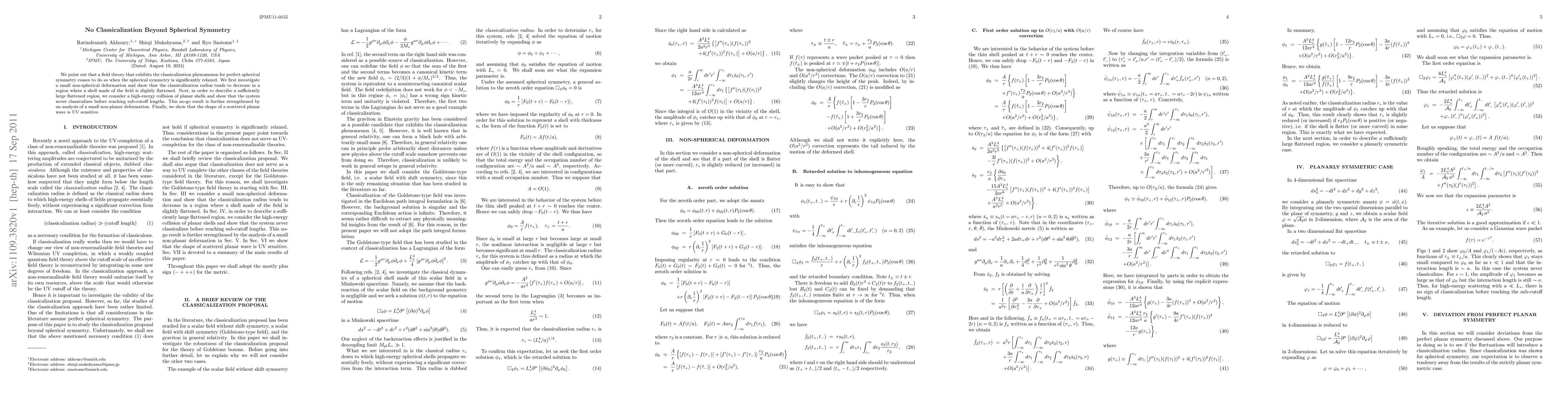 We point out that a field theory that exhibits the classicalization phenomenon for perfect spherical symmetry ceases to do so when the spherical symmetry is significantly relaxed. We first investigate a small non-spherical deformation and show that the classicalization radius tends to decrease in a region where a shell made of the field is slightly flattened. Next, in order to describe a sufficiently large flattened region, we consider a high-energy collision of planar shells and show that the system never classicalizes before reaching sub-cutoff lengths. This no-go result is further strengthened by an analysis of a small non-planar deformation. Finally, we show that the shape of a scattered planar wave is UV sensitive.