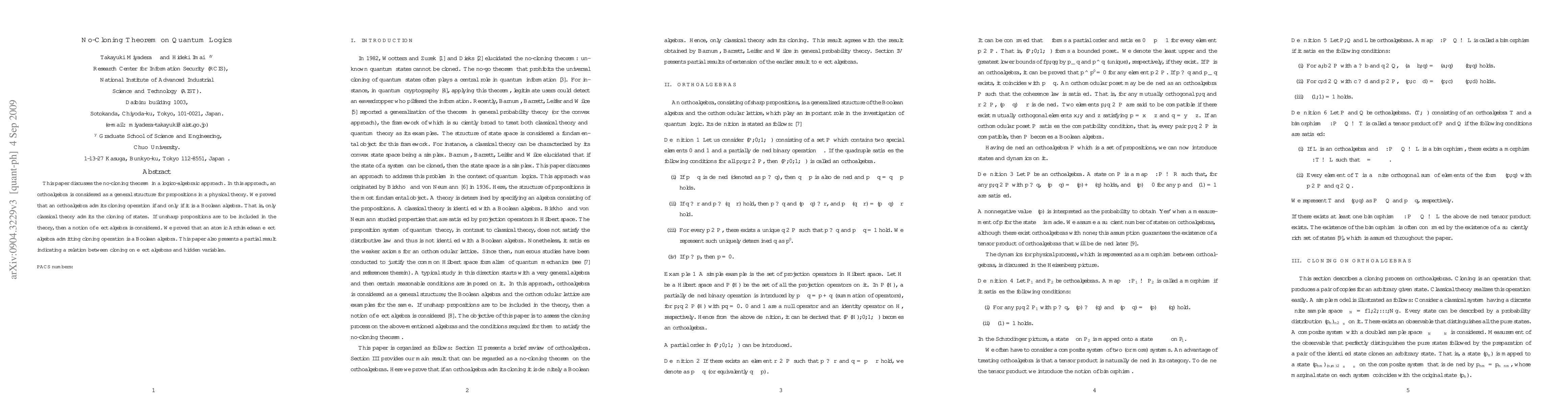 This paper discusses the no-cloning theorem in a logico-algebraic approach. In this approach, an orthoalgebra is considered as a general structure for propositions in a physical theory. We proved that an orthoalgebra admits cloning operation if and only if it is a Boolean algebra. That is, only classical theory admits the cloning of states. If unsharp propositions are to be included in the theory, then a notion of effect algebra is considered. We proved that an atomic Archimedean effect algebra admitting cloning operation is a Boolean algebra. This paper also presents a partial result indicating a relation between cloning on effect algebras and hidden variables.