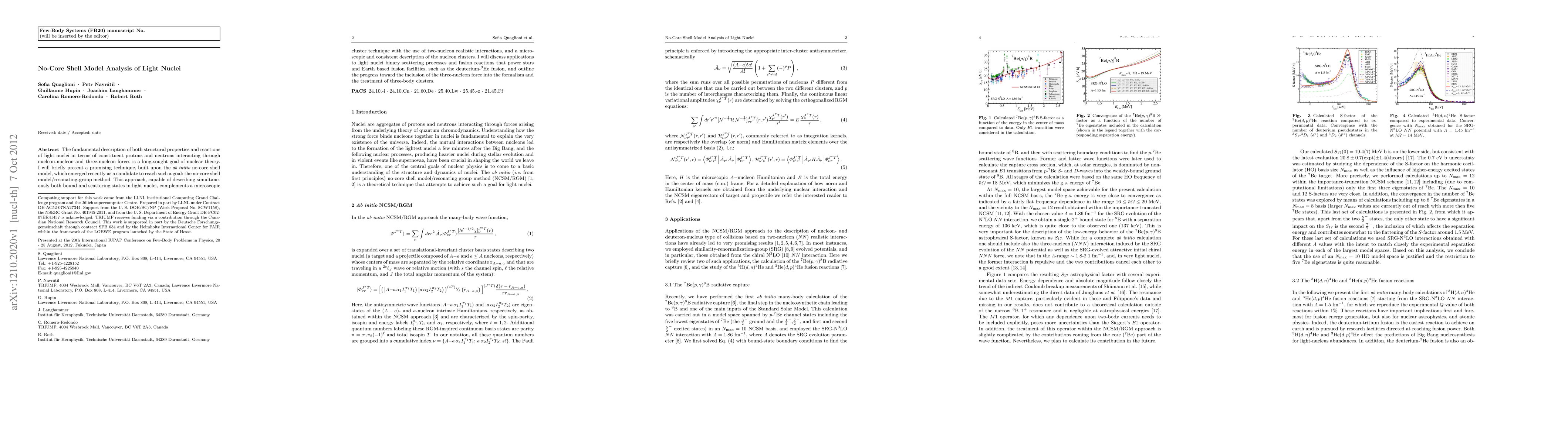 The fundamental description of both structural properties and reactions of light nuclei in terms of constituent protons and neutrons interacting through nucleon-nucleon and three-nucleon forces is a long-sought goal of nuclear theory. I will briefly present a promising technique, built upon the {\em ab initio} no-core shell model, which emerged recently as a candidate to reach such a goal: the no-core shell model/resonating-group method. This approach, capable of describing simultaneously both bound and scattering states in light nuclei, complements a microscopic cluster technique with the use of two-nucleon realistic interactions, and a microscopic and consistent description of the nucleon clusters. I will discuss applications to light nuclei binary scattering processes and fusion reactions that power stars and Earth based fusion facilities, such as the deuterium-$^3$He fusion, and outline the progress toward the inclusion of the three-nucleon force into the formalism and the treatment of three-body clusters.