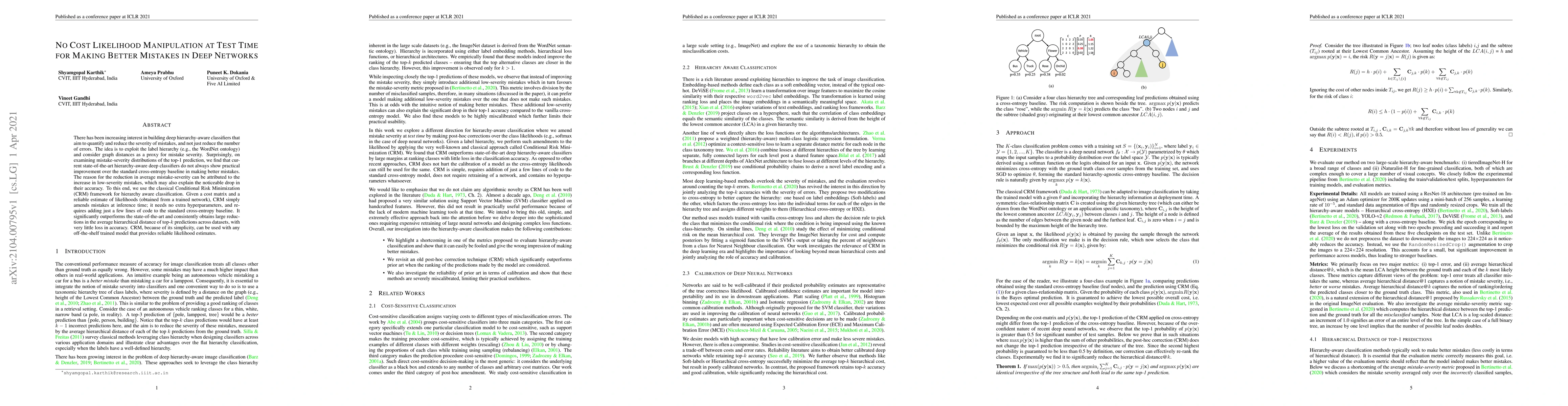 This paper proposes a simple, cost-free method using Conditional Risk Minimization (CRM) to improve the severity of mistakes in deep networks, leveraging label hierarchies without extra hyperparameters. CRM amends mistakes at test time with minimal code changes, significantly reducing average hierarchical distances of top-$k$ predictions while maintaining accuracy.