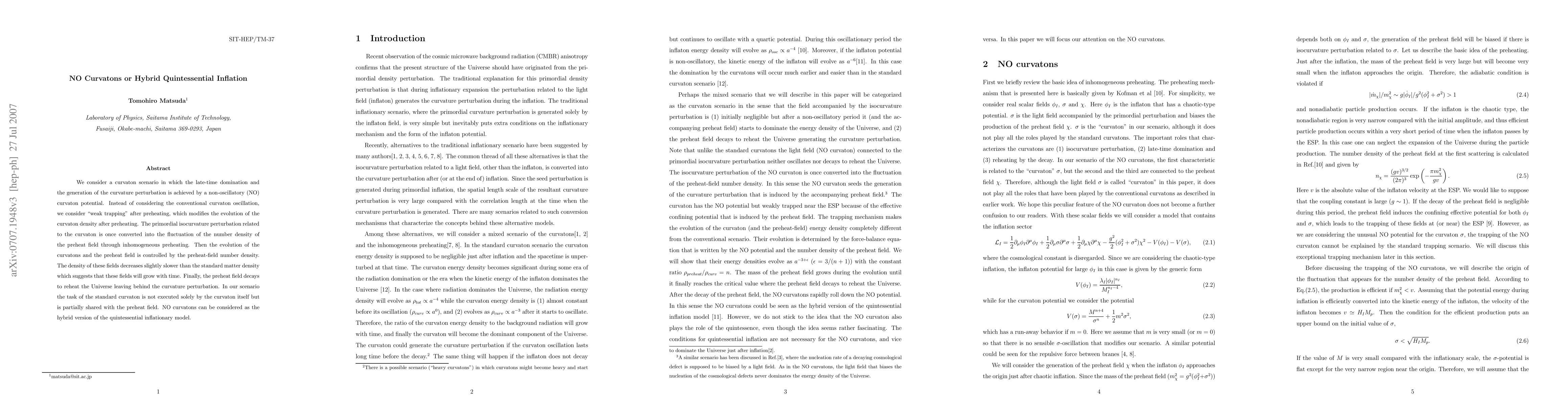 This paper explores a non-oscillatory (NO) curvaton scenario where the curvaton potential generates curvature perturbations without oscillation, relying on "weak trapping" after preheating. The curvaton and preheat fields evolve based on the preheat field's number density, leading to a hybrid model that shares curvaton duties with the quintessential inflationary model.