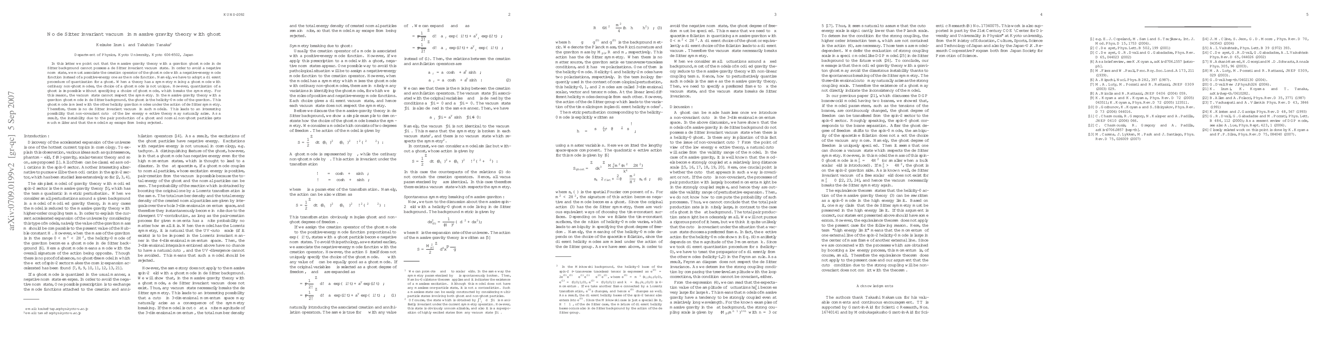 In this letter we point out that the massive gravity theory with a graviton ghost mode in de Sitter background cannot possess a de Sitter invariant vacuum state. In order to avoid a negative norm state, we must associate the creation operator of the ghost mode with a negative-energy mode function instead of a positive-energy one as the mode function. Namely, we have to adopt a different procedure of quantization for a ghost. When a theory has a symmetry mixing a ghost mode with ordinary non-ghost modes, the choice of a ghost mode is not unique. However, quantization of a ghost is impossible without specifying a choice of ghost mode, which breaks the symmetry. For this reason, the vacuum state cannot respect the symmetry. In the massive gravity theory with a graviton ghost mode in de Sitter background, the ghost is the helicity-0 mode of the graviton. This ghost mode is mixed with the other helicity graviton modes under the action of de Sitter symmetry. Therefore, there is no de Sitter invariant vacuum in such models. This leads to an interesting possibility that non-covariant cutoff of the low energy effective theory may naturally arise. As a result, the instability due to the pair production of a ghost and normal non-ghost particles gets much milder and that the model may escape from being rejected.