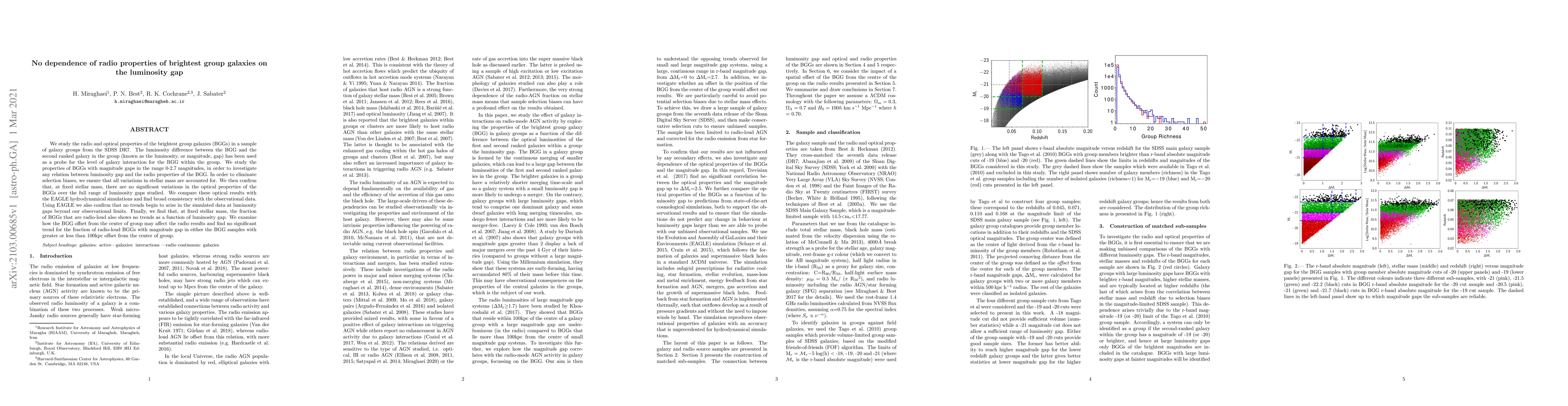 We study the radio and optical properties of the brightest group galaxies (BGGs) in a sample of galaxy groups from the SDSS DR7. The luminosity difference between the BGG and the second ranked galaxy in the group (known as the luminosity, or magnitude, gap) has been used as a probe for the level of galaxy interaction for the BGG within the group. We study the properties of BGGs with magnitude gaps in the range 0-2.7 magnitudes, in order to investigate any relation between luminosity gap and the radio properties of the BGG. In order to eliminate selection biases, we ensure that all variations in stellar mass are accounted for. We then confirm that, at fixed stellar mass, there are no significant variations in the optical properties of the BGGs over the full range of luminosity gaps studied. We compare these optical results with the EAGLE hydrodynamical simulations and find broad consistency with the observational data. Using EAGLE we also confirm that no trends begin to arise in the simulated data at luminosity gaps beyond our observational limits. Finally, we find that, at fixed stellar mass, the fraction of BGGs that are radio-loud also shows no trends as a function of luminosity gap. We examine how the BGG offset from the center of group may affect the radio results and find no significant trend for the fraction of radio-loud BGGs with magnitude gap in either the BGG samples with greater or less than 100kpc offset from the center of group.