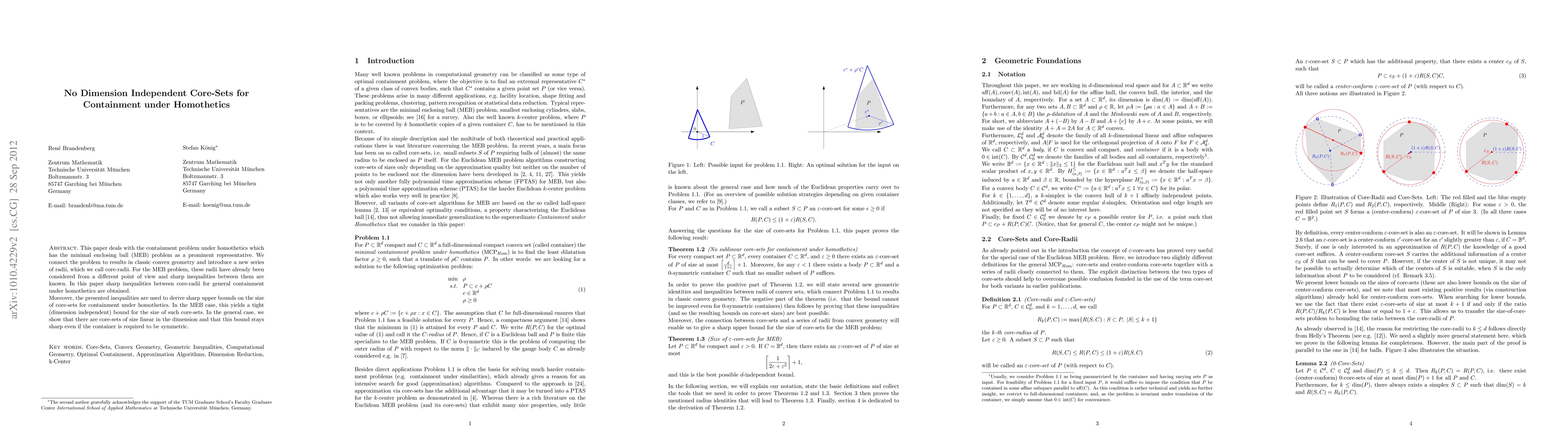 This paper investigates the containment problem under homothetics, introducing core-radii and establishing sharp inequalities between them. It provides dimension-independent upper bounds for core-sets in the minimal enclosing ball problem, while demonstrating that for general containment, core-sets must be linear in dimension.