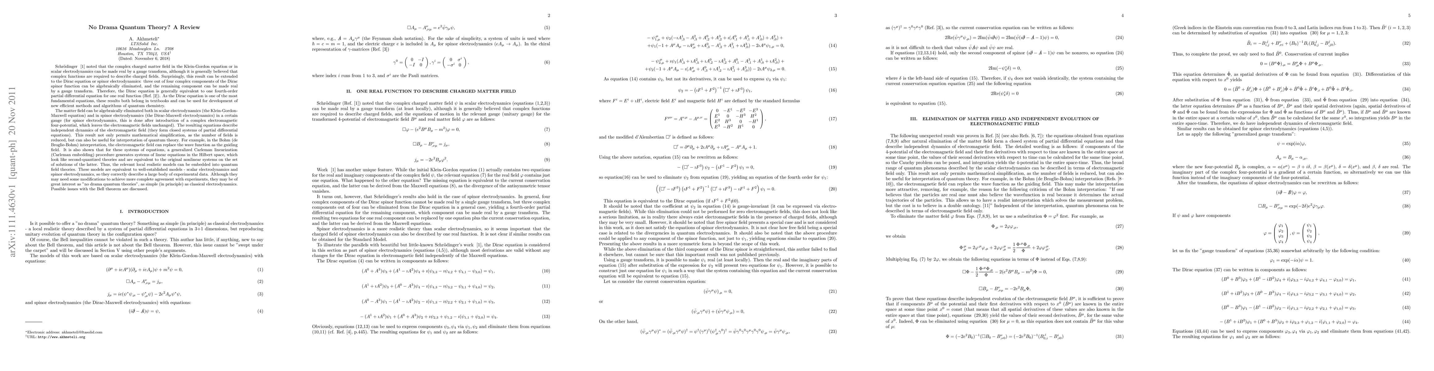 Schr\"{o}dinger (Nature, v.169, 538 (1952)) noted that the complex matter field in the Klein-Gordon equation can be made real by a gauge transform, although charged fields are believed to require complex functions. Surprisingly, the result can be extended to the Dirac equation: three complex components of the Dirac spinor function can be algebraically eliminated, and the remaining component can be made real by a gauge transform. Therefore, the Dirac equation is generally equivalent to one fourth-order partial differential equation for one real function (A. Akhmeteli, J. Math. Phys. v.52, 082303 (2011)). These results both belong in textbooks and can be used for development of new efficient methods of quantum chemistry. The matter field can be algebraically eliminated both in scalar electrodynamics and in spinor electrodynamics in a certain gauge. The resulting equations describe independent dynamics of the electromagnetic field, which permits mathematical simplification and can be useful for interpretation of quantum theory. For example, in the Bohm interpretation, the electromagnetic field can replace the wave function as the guiding field. It is also shown that for these equations, generalized Carleman embedding generates systems of linear equations in the Hilbert space, which look like second-quantized theories and are equivalent to the original nonlinear systems on the set of solutions of the latter. Thus, the relevant local realistic models can be embedded into quantum field theories. These models are equivalent to scalar electrodynamics and spinor electrodynamics, so they correctly describe a large body of experimental data. Although they may need some modifications for better agreement with experiments, they may be of great interest as "no drama quantum theories", as simple (in principle) as classical electrodynamics. Possible issues with the Bell theorem are discussed.