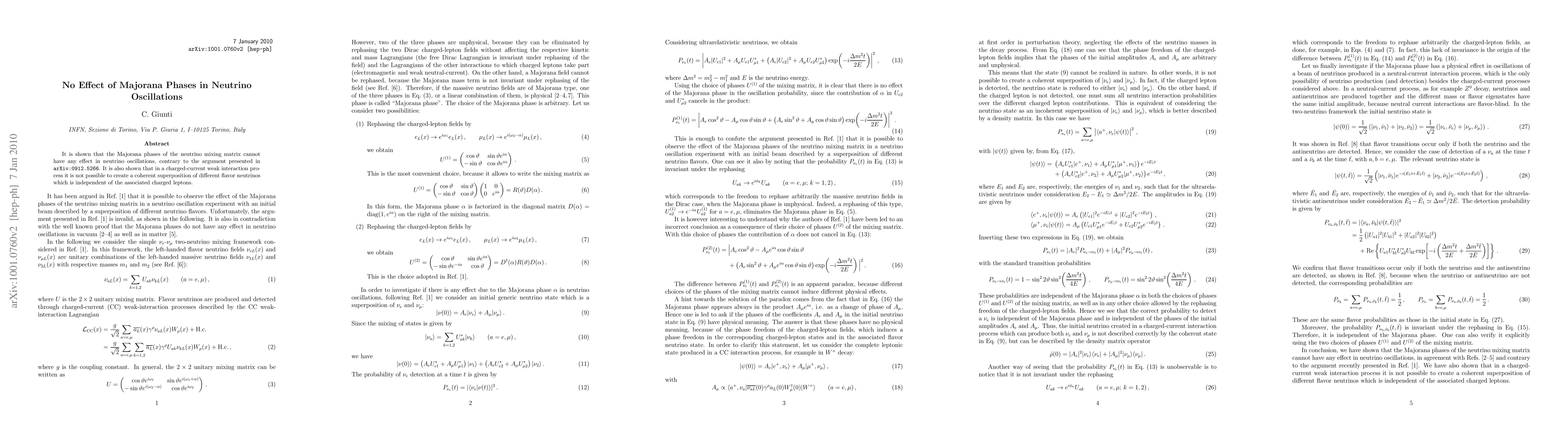Researchers found no effect of Majorana phases on neutrino oscillations and that they cannot create a coherent superposition of flavor neutrinos independent of charged leptons.