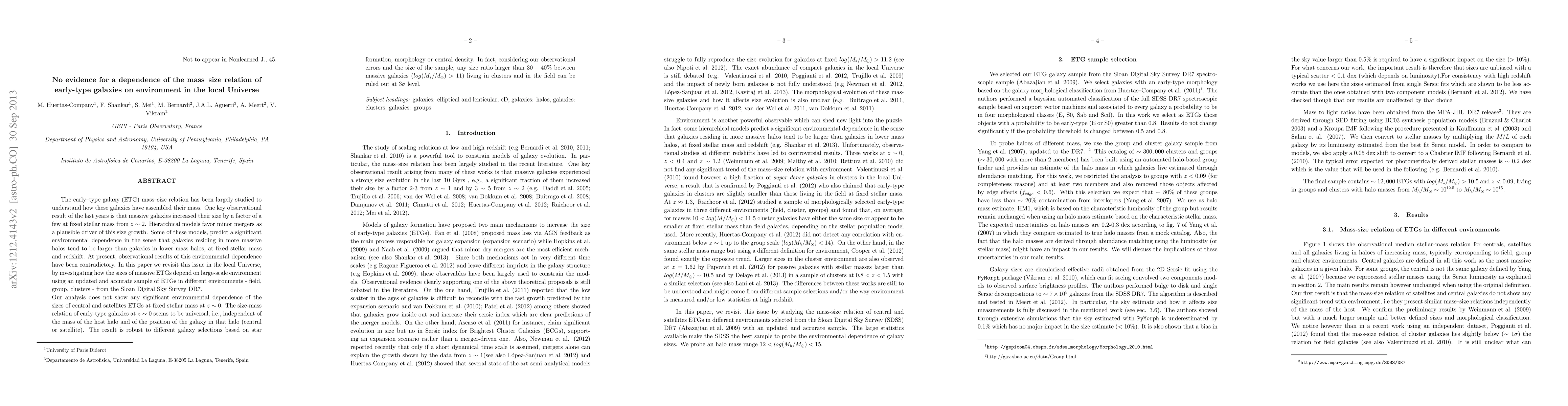 This paper finds no significant environmental dependence on the mass-size relation of early-type galaxies in the local Universe, indicating that the size-mass relation is universal and independent of the host halo mass or galaxy position. The study uses an updated sample from the Sloan Digital Sky Survey DR7.