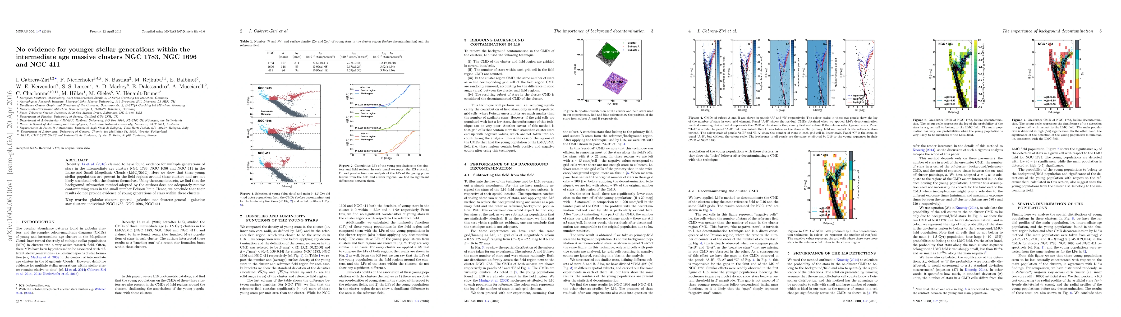 Recent study refutes claims of young stellar generations in intermediate age clusters NGC 1783, NGC 1696, and NGC 411; found contaminating stars in background data rather than within the clusters.