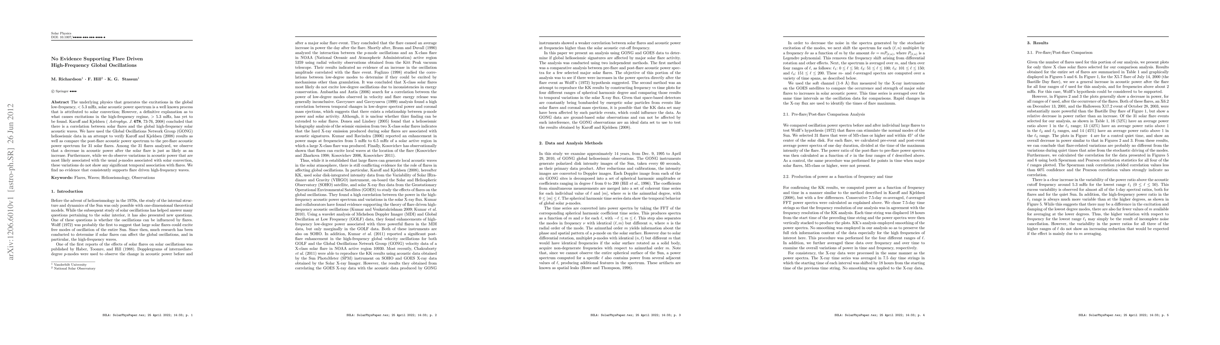 This study using GONG helioseismic data found no consistent correlation between solar flares and high-frequency global oscillations, refuting previous claims of such a relationship. Variations in acoustic power were observed but not significantly linked to solar flares.