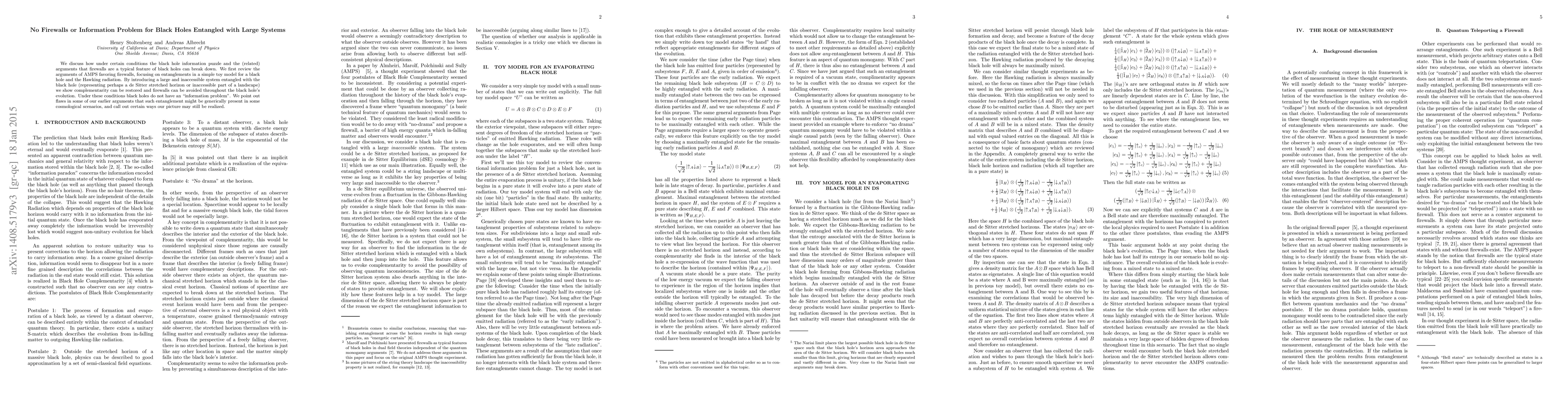 This paper argues that under specific conditions, entanglement with a large, inaccessible system can resolve the black hole information paradox and avoid the necessity of firewalls, suggesting that black holes do not inherently possess an "information problem" under these circumstances. It also critiques earlier assumptions about the prevalence of such entanglement in cosmological contexts.
