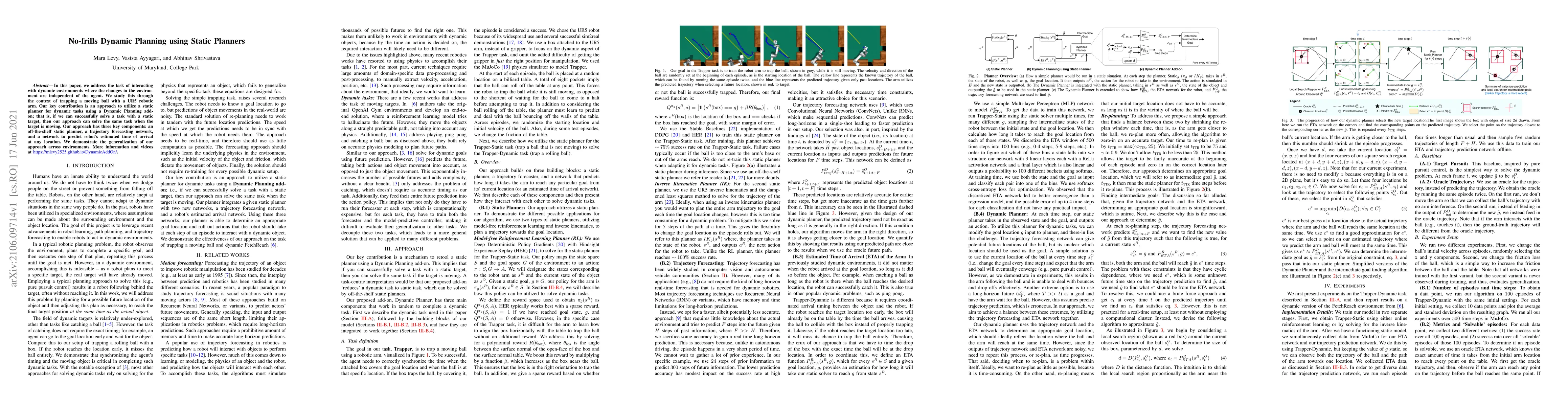 In this paper, we address the task of interacting with dynamic environments where the changes in the environment are independent of the agent. We study this through the context of trapping a moving ball with a UR5 robotic arm. Our key contribution is an approach to utilize a static planner for dynamic tasks using a Dynamic Planning add-on; that is, if we can successfully solve a task with a static target, then our approach can solve the same task when the target is moving. Our approach has three key components: an off-the-shelf static planner, a trajectory forecasting network, and a network to predict robot's estimated time of arrival at any location. We demonstrate the generalization of our approach across environments. More information and videos at https://mlevy2525.github.io/DynamicAddOn.