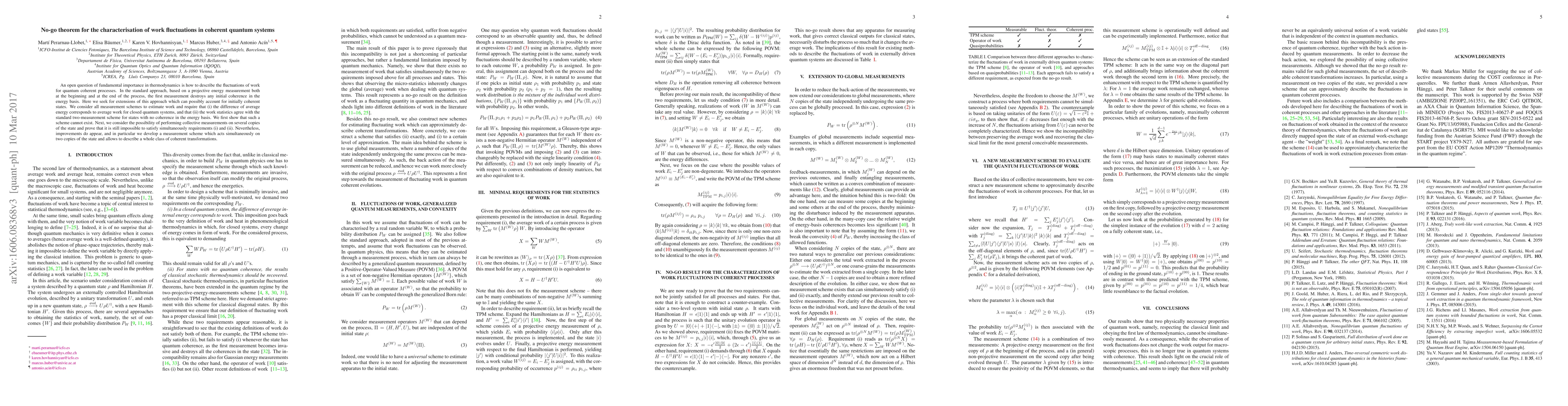 The research presents a significant advancement by proving a no-go theorem for characterizing work fluctuations in coherent quantum systems and proposing a new measurement scheme that, while not fully resolving the issue, offers improvements in describing such systems.